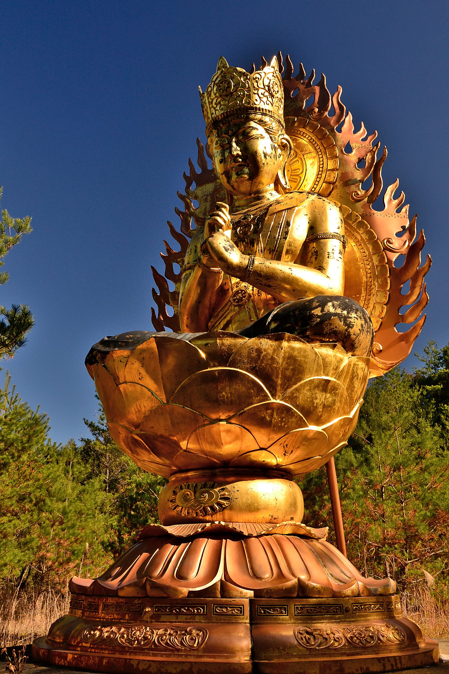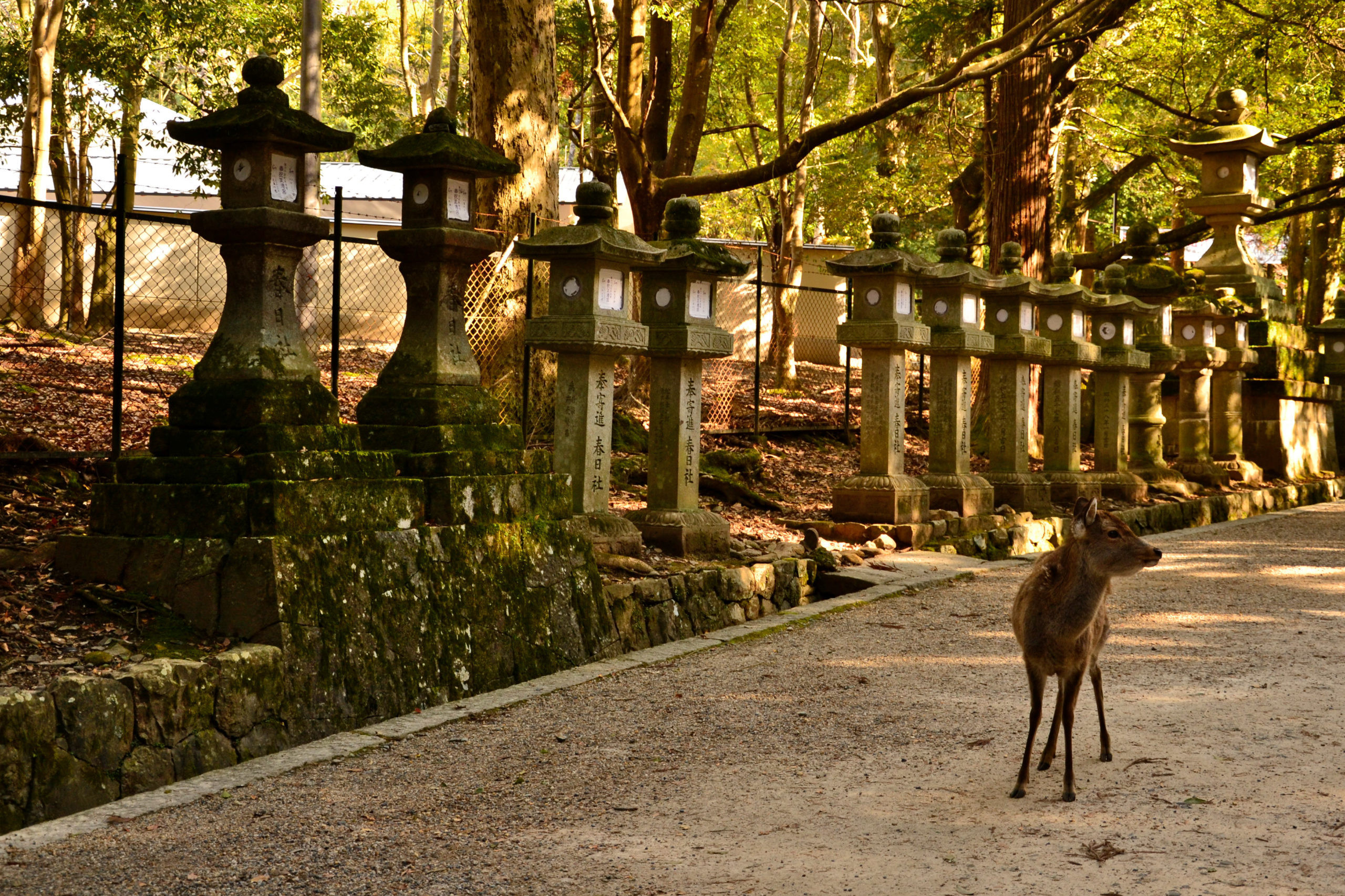 Die Hirsche leben um den Tempel von Todai-ji. Der Tempel selbst ist das größte Holzgebäude der Welt. Dieser riesige Tempel beherbergt die 16,2 Meter hohe Statue des Großen Buddha (Daibutsu). Die Buddha-Statue ist eine der größten Bronzefiguren der Welt und wurde ursprünglich im Jahr 746 gegossen. Die heutige Statue mit ihren 15 Metern besteht aus 437 Bronzetönen und 130 kg Gold. Rund um den Haupttempelsaal befinden sich mehrere Hallen.