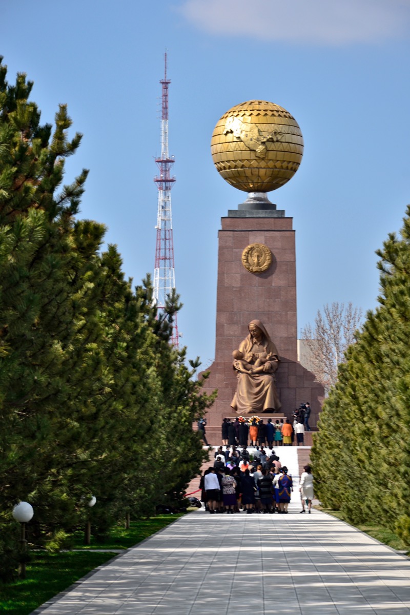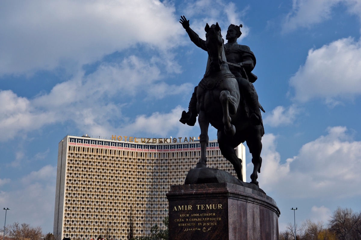 Wir haben unsere ersten Tage in Usbekistan in der Hauptstadt Taschkent verbracht. Ein Erdbeben im Jahr 1966 zerstörte viele alte Gebäude, so dass in Taschkent nur wenige Gebäude aus der Sowjetzeit zu finden sind. Die offensichtlichsten Zeichen aus der Sowjetzeit sind große Parks, breite Straßen und Kasten-förmige Hochhäuser. Darüber hinaus wird der Unabhängigkeitsplatz von einem Globus gekrönt, auf dem sich früher eine riesige Lenin-Statue befand. Ein kurzes Stück weiter wird der Timur-Platz von einer Statue des bekannten Nationalhelden auf dem Pferd dominiert.