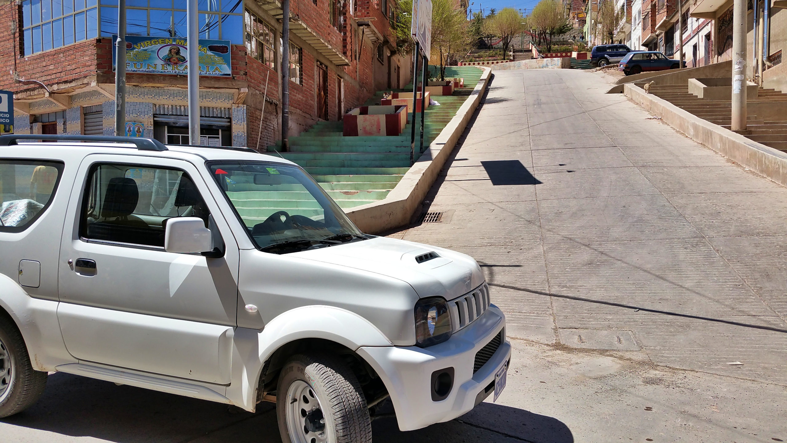 Self-driving in La Paz is sort of fun but some streets are that steep that our rental car couldn’t make them. Even though we had a small SUV. Traffic jams in the streets require a good relationship to the gas pedal.