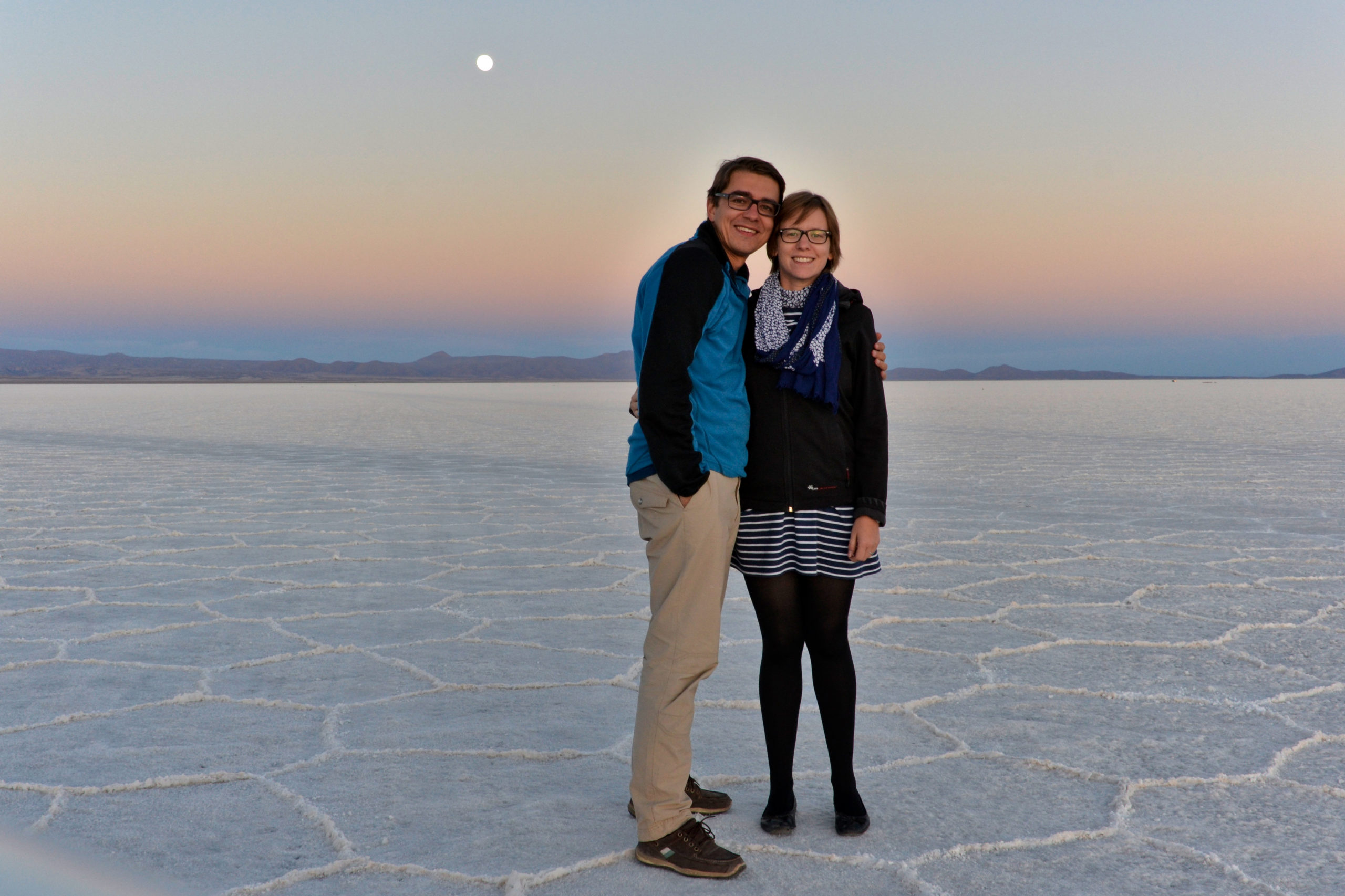 The salt lake or nowadays salt desert near Uyuni is the world’s largest one with approx. 10,000 km². The complete area on 3,650 m above sea level is covered with salt and looks like snow with an interesting structure. Distances are not recognizable due to the overall white area which leads to curious and very popular photos. Consequently, we made 421 photos on a single day…