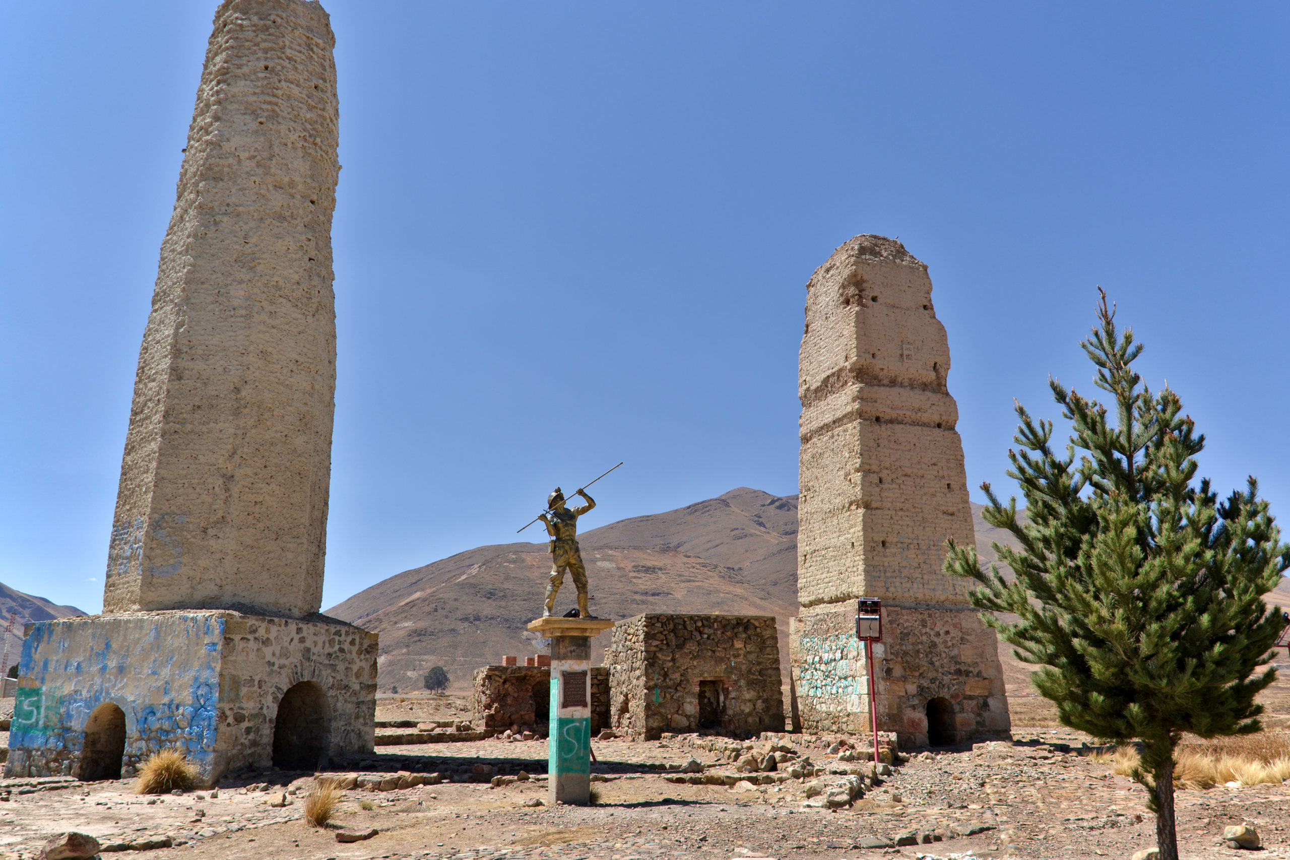 Wir hielten an einem Industriestandort in Poopo an, der ohne Umweg auf dem Weg von Oruro nach Uyuni liegt. Es ist ein schöner Zwischenstopp, um von außen einen authentischen Blick auf ehemalige Bergbaugebäude und das Andenleben zu bekommen.
