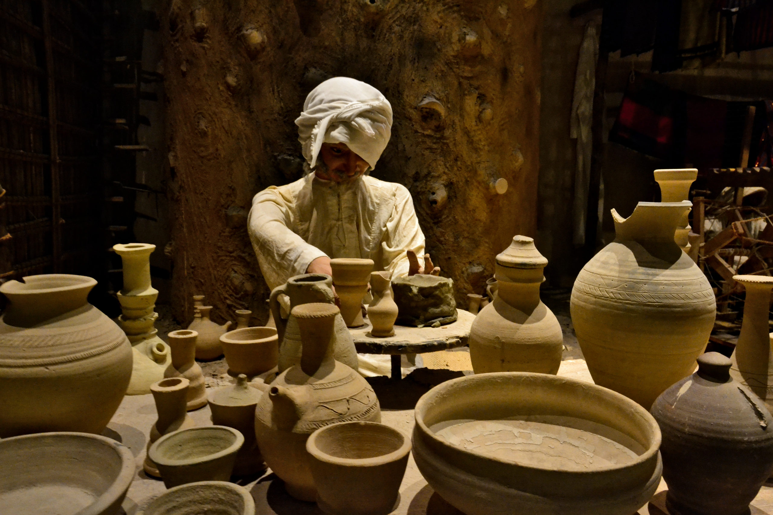 More about the traditional way of life shows the Heritage Village on Breakwater Island. The workshops of the souk show the wood, metal and weaving work and you can have a look into a Bedouin tent.