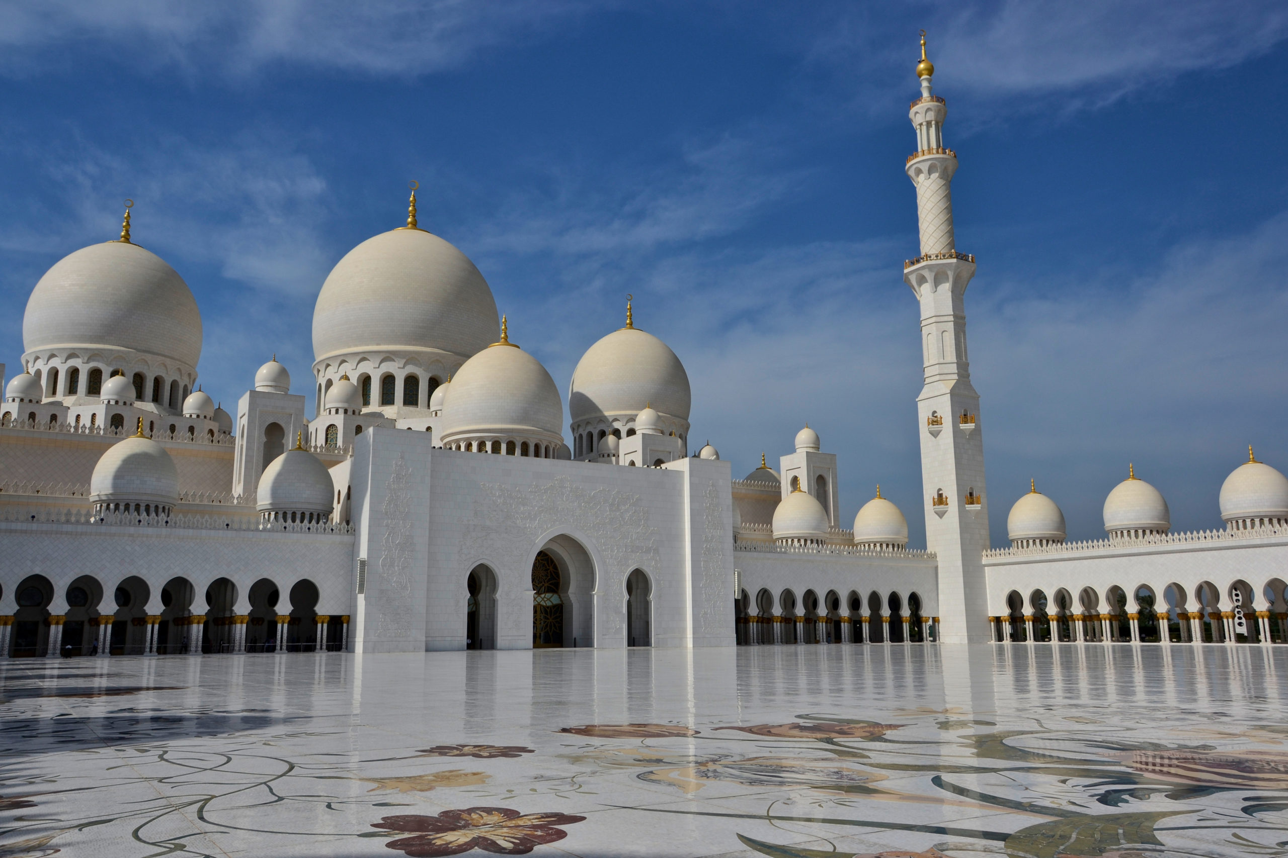 The white marble is downright dazzling in the sun and should be an image of the paradise. It is one of the biggest mosque in the world. The 5,600 m² carpet weighs 47 tons and was made in Iran by 1,200 weavers. The huge chandelier consists of 2 mn Swarovski crystals from Germany is said to be the largest in the world.