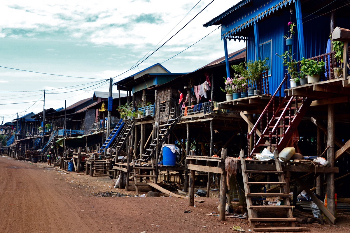 The closeness of the houses to the water varies according to the season. At the end of the wet season after continuous heavy rainfall the lake will rise so that the streets are only accessible via boat, the stilts of the houses are under water and the ladders to reach the house are not required anymore. In the dry season on the other hand the people have to descend several meters to reach the water. Seeing this truly authentic Cambodian life was a mind-boggling experience.