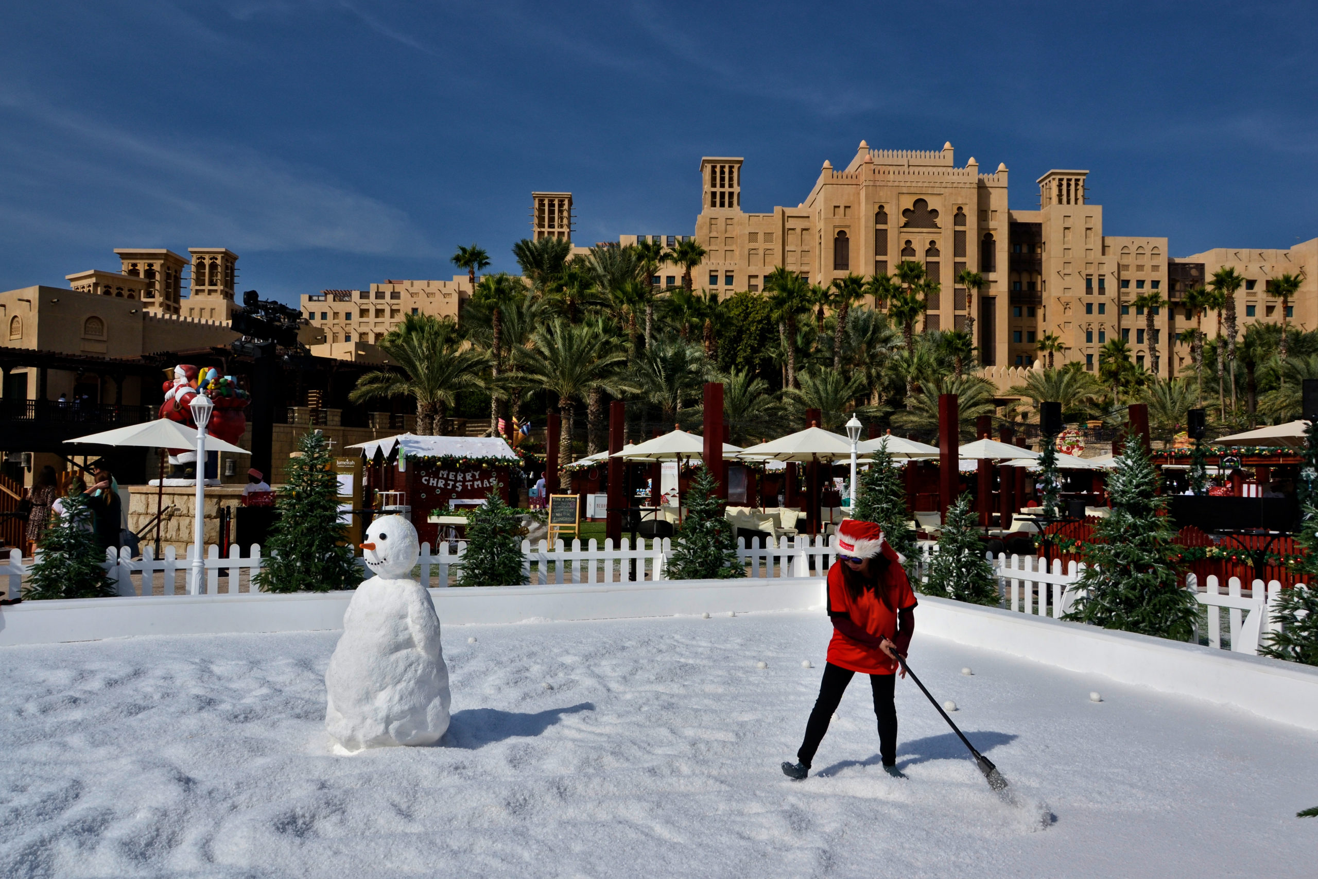 Walking from the Burj Khalifa to the Jumeirah Hotel Dubai required a lot of discipline to not cave in taking a taxi. Each couple of meters another taxi stopped and asked us to take us wherever we want. Walking seems not be something that is normal in the United Arab Emirates. From there we walked over to The Walk, JBR to enjoy the Christmas market with a kind of snow.