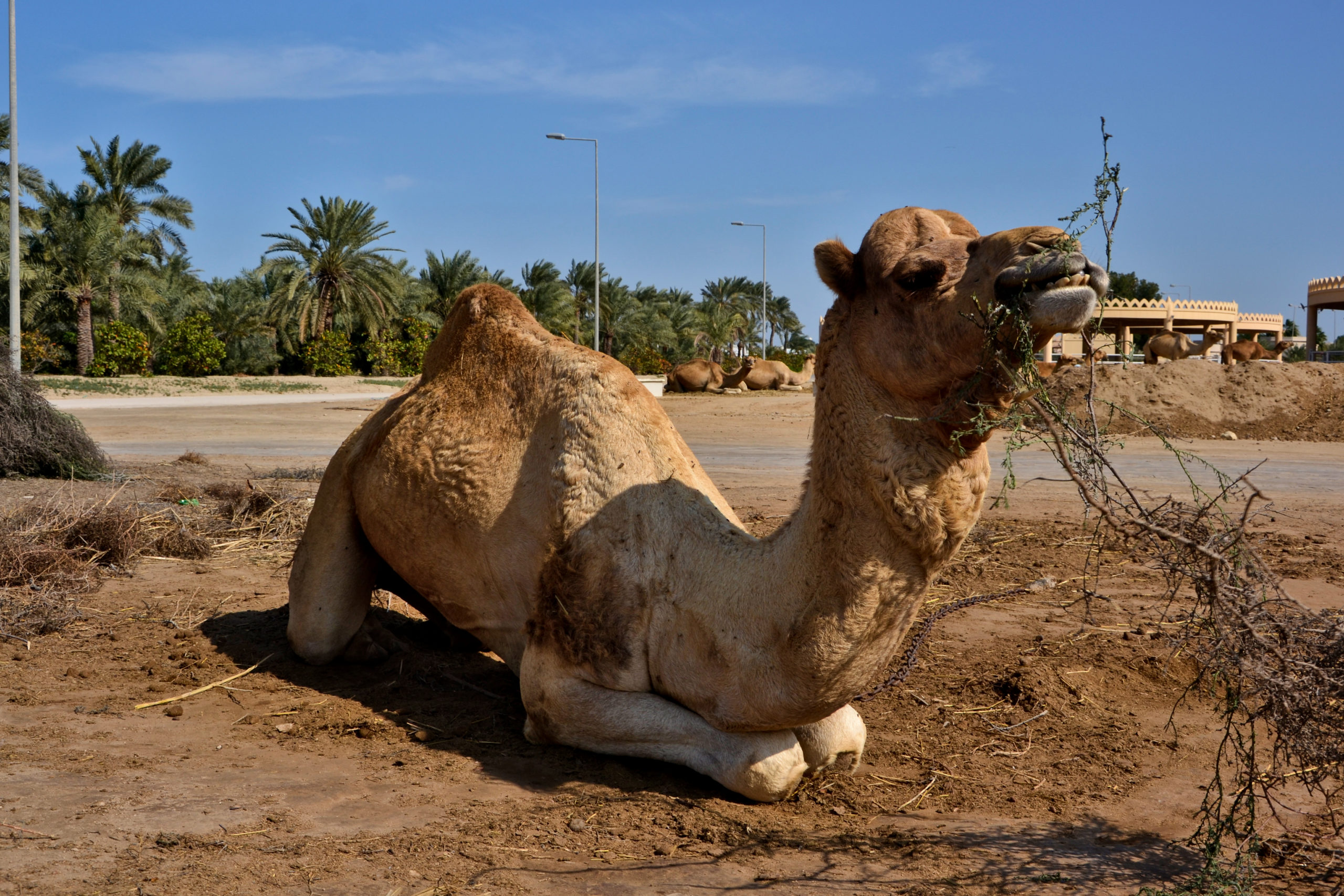 In Al Ain the color of the nature is completely different to the desert we have seen so far: there are so many green parks, gardens and palm groves. This is the reason why Al Ain is also known as “garden city”. The reason are the more than 3000 years old Falaj water system that brings the water from the mountains to the oasis. Skyscrapers are not allowed in Al Ain – the maximum height of buildings is set to six levels – to safe the cultural heritage. More than 1 million dates palms do exits within the oasis in Al Ain. The modern style of UAE is visible allover the city with streets of six lanes and the new governmental buildings however the cultural states of Al Ain (UNESCO World Heritage) and the camel market has been remained.
