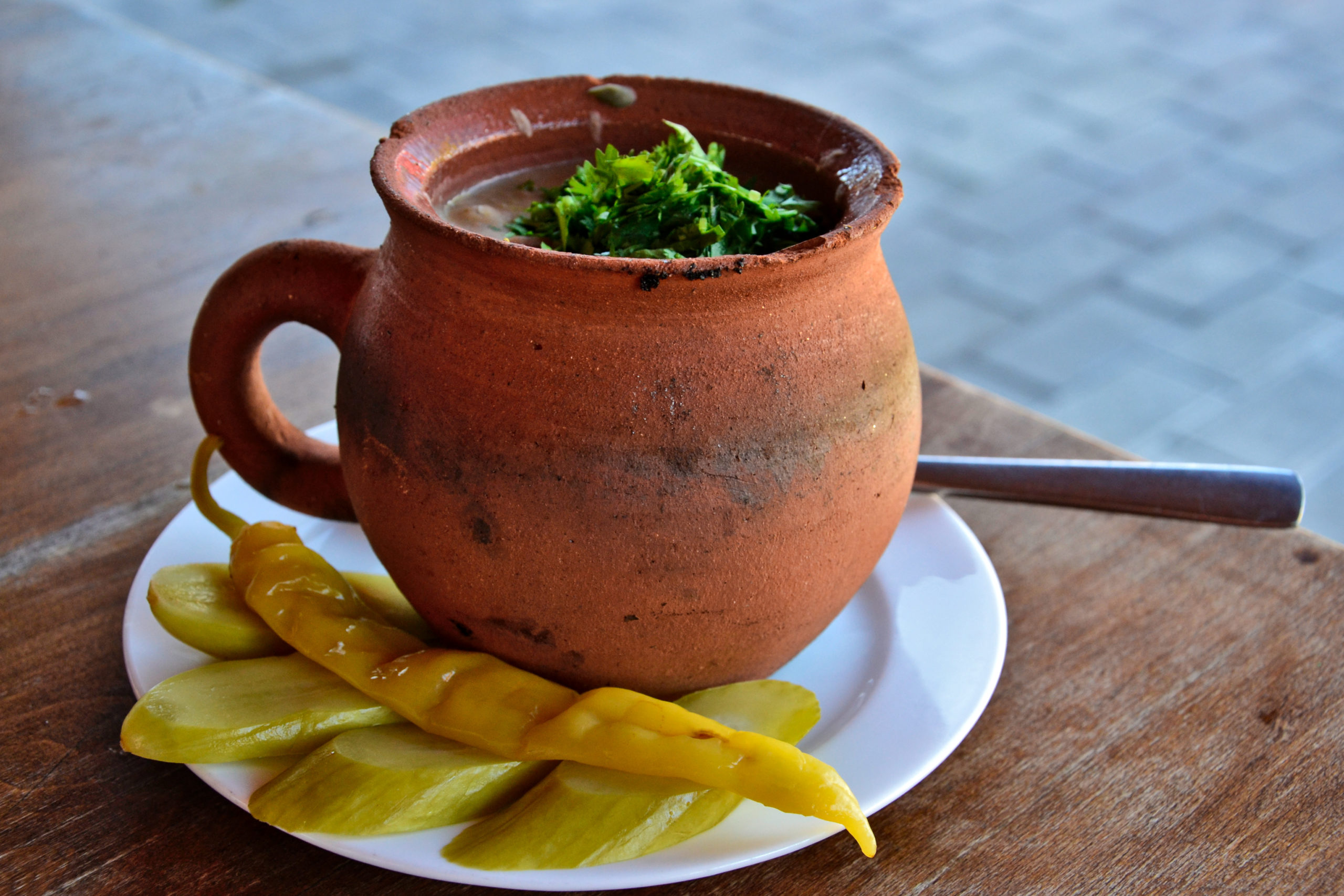 Was beim Lesen der Beschreibung nicht so besonders klingt, war Lobio. Aber die Bohnen, die in einem Tontopf mit viel Herzhaftem zubereitet werden, sind unglaublich lecker. Wir haben das auch zu Hause versucht, aber das Geheimnis scheint in der Zubereitungsmethode mit dem Tontopf zu liegen.