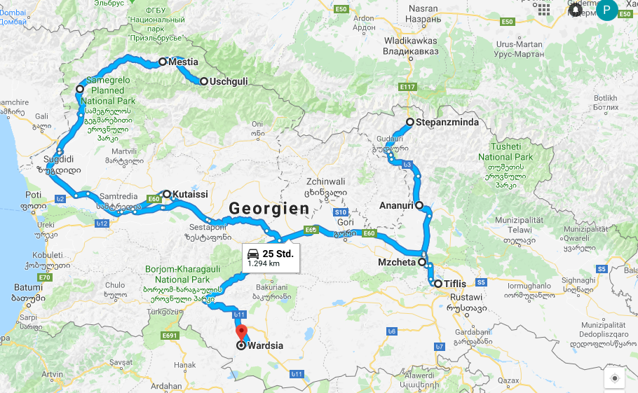 Unsere Reiseroute durch Georgien
