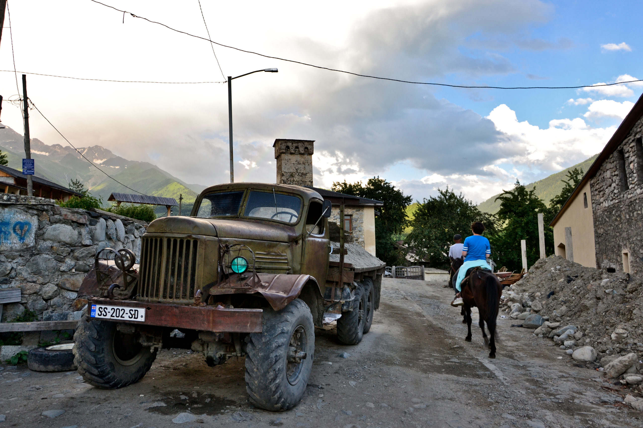 Einige der Dörfer und Turmhäuser sind in die Liste des UNESCO-Weltkulturerbes eingetragen (offizieller Name ist Upper Svenati). Da es ausdrücklich verboten war, mit unserem Mietwagen nach Ushguli zu fahren, mussten wir eine Tour mit einem Allradfahrzeug buchen. Für die rd. 50 Kilometer dauerte die Fahrt fast vier Stunden.
