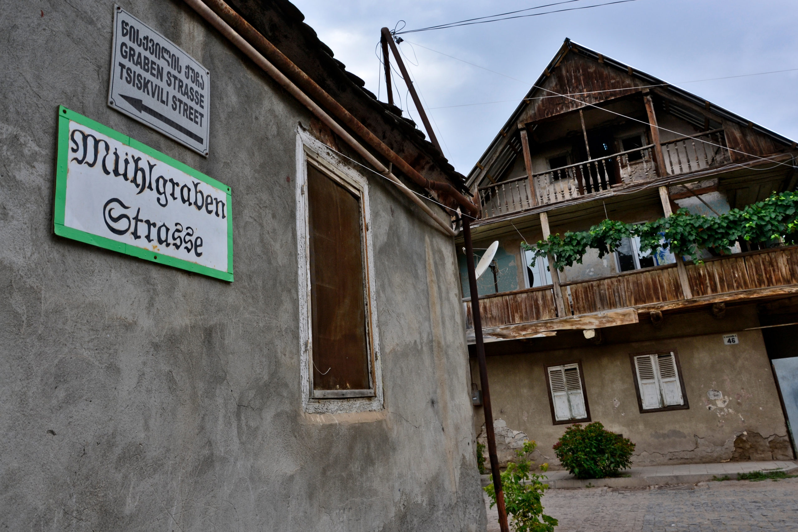 Etwa 50 km südlich von Tiflis an der Grenze zu Armenien besuchten wir die Stadt Bolnisi. Bolnisi war wegen der deutschen Siedler um 1818 früher als „Katharinenfeld“ bekannt. Das Gebiet wurde aufgrund der befestigten Häuser sowie der präzisen und asphaltierten Straßen bewundert. Die Stadt wurde 1921 in Luxemburg umbenannt und die Deutschen wie die Georgier enteignet. Außerdem mussten die Deutschen nach Sibirien umziehen. Die Verkehrszeichen sind noch in Altdeutscher Schrift geschrieben.