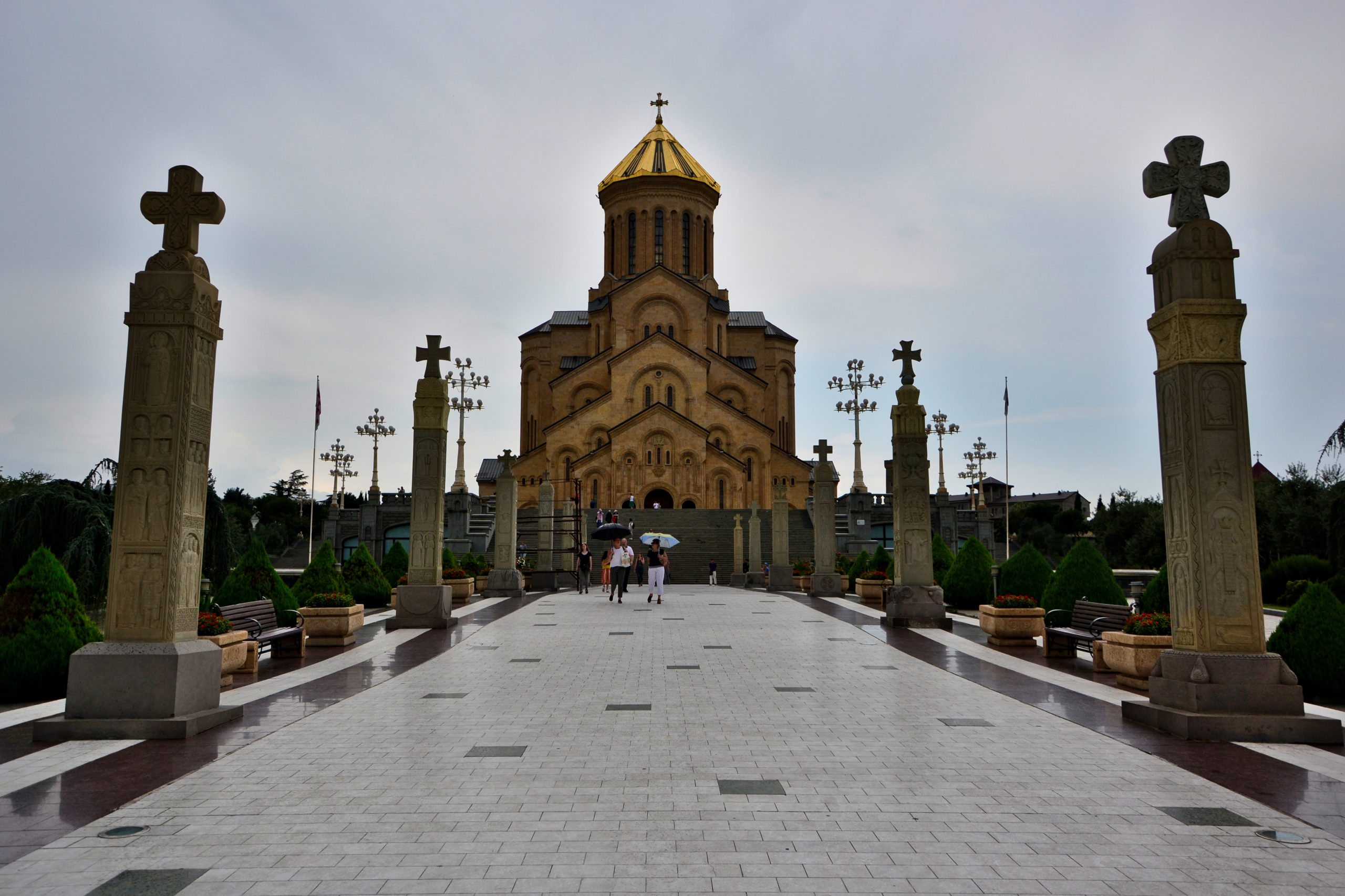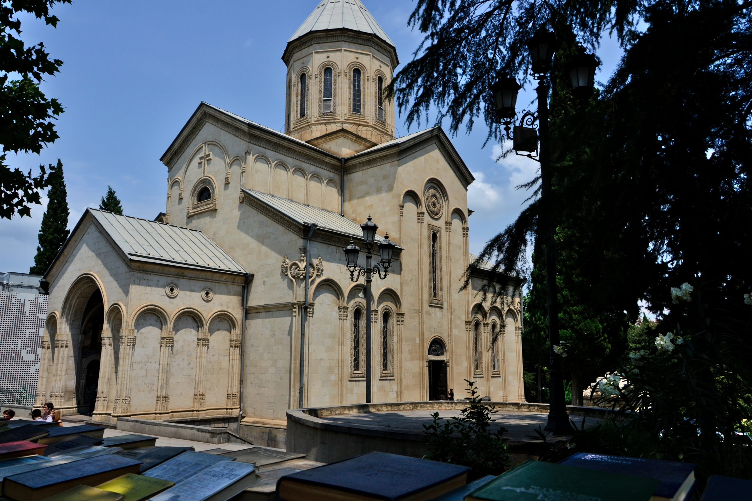 Wir haben diese Kathedrale von der Narikala-Festung aus gesehen, da sie nachts beleuchtet ist und sich auf einem Hügel (Elias-Hügel) befindet. Die Kathedrale von Zminda Sameba ist die größte Kirche in der Region Transkaukasien (d.h. Georgien, Armenien und Aserbaidschan). Sie wurde 2004 nach neunjähriger Bauzeit fertiggestellt. Die Glocken des Doms wurden in Deutschland gegossen. Ihr können die Kathedrale zu Fuß vom Stadtzentrum aus erreichen.