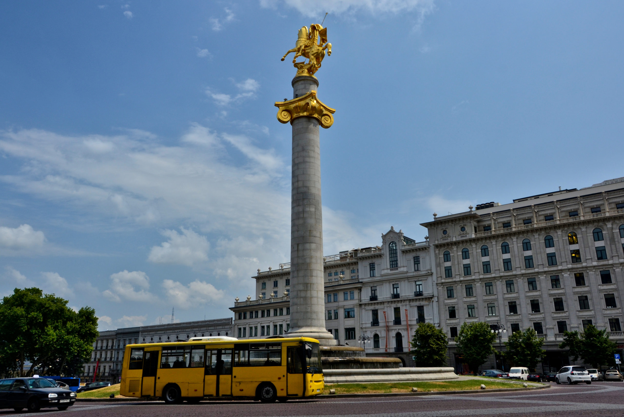 Früher als Lenin-Platz bekannt, wurde die Statue 2006 durch den vergoldeten Drachentöter Georg ausgetauscht. Wir haben den Freiheitsplatz (Liberty Square) als zentralen Orientierungspunkt genutzt, da sich auch unsere Autovermietung am Platz befindet. An der anderen Seite dominiert das Rathaus den Platz.