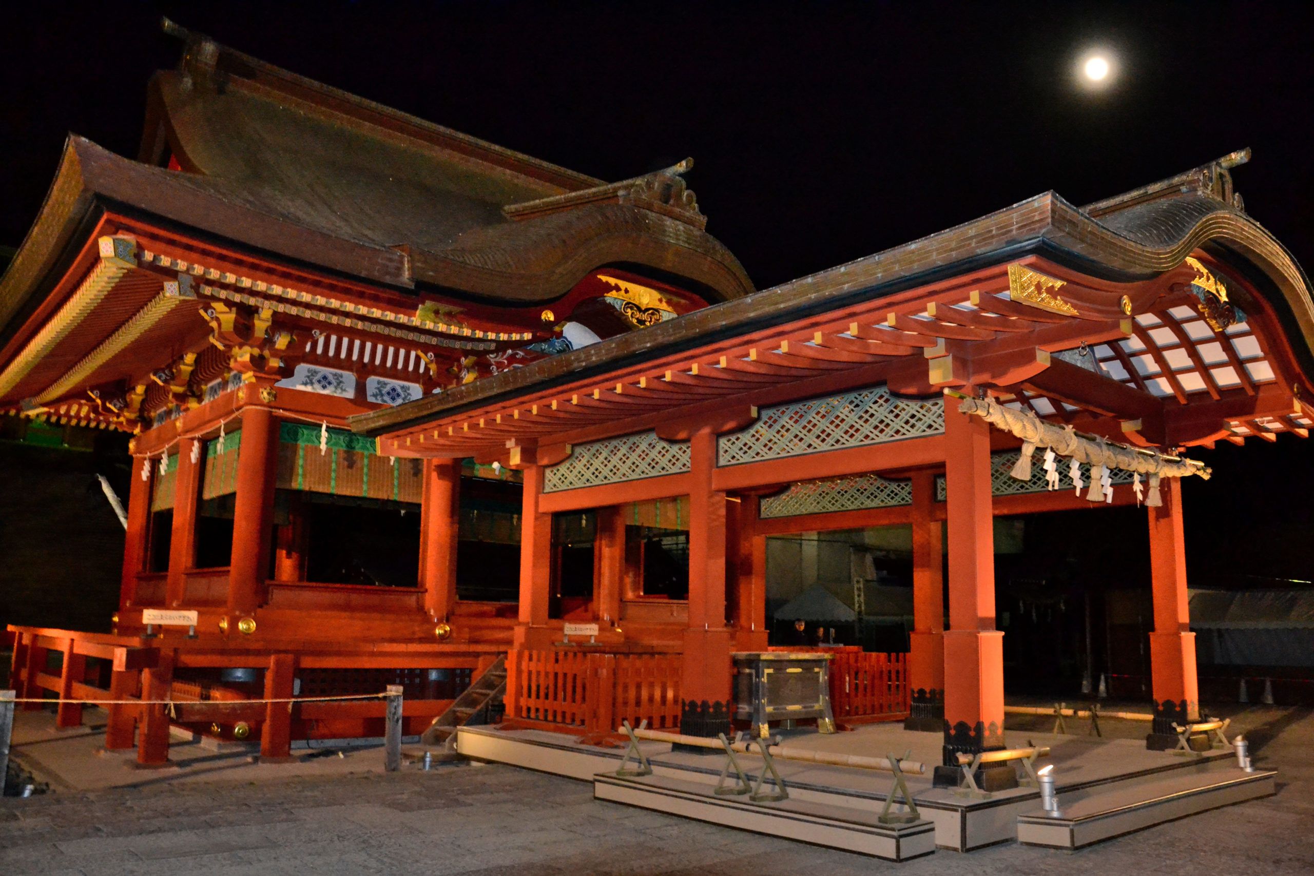 Nach der Seidenmühle haben wir einen Zwischenstopp in Kamakura gemacht. Dies war eher nur zum Schlafen geplant, aber wir fanden den Tsurugaoka Hachiman-gu-Schrein, der in der Nacht beleuchtet wurde. Es war bereits geschlossen, aber wir haben die Gelegenheit für einen kurzen Spaziergang durch die Gegend genutzt.