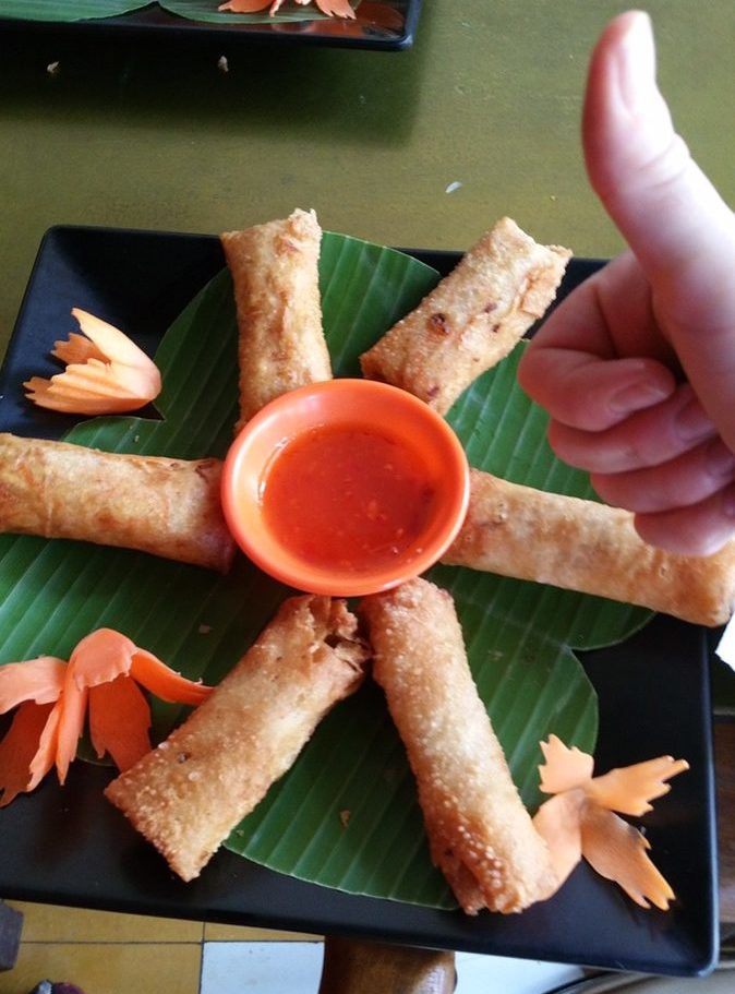 Das Zentrum von Siem Reap ist der alte Markt, auf dem wir auch für unseren Kochkurs einkaufen gingen. Jeder konnte seine Vorspeise und sein Hauptgericht aus dem Menü auswählen. Wir probierten gebratene Frühlingsrollen und das traditionelle Khmer-Gericht Amok. Amok ist eine köstliche Art von dampfgekochtem Curry, das in einem Bananenblatt serviert wird. Wir haben dieses mit Tofu gemacht.