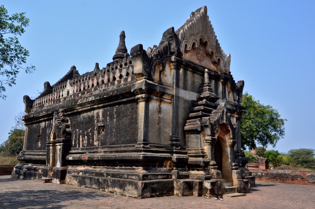 Für den zweiten und dritten Tag in Bagan haben wir E-Bikes gemietet, um die entlegeneren Tempel zu erkunden. E-Bikes sind (eher elektronischer Roller) eine gute Idee in dieser trockenen und heißen Gegend von Myanmar. Die Tempel mit nur einer Ebene im Erdgeschoss sind älter als die mit mehreren Ebenen. Das Hauptmaterial waren Ziegelsteine, die mit dem Boot nach Bagan gebracht wurden. Alle noch existierenden Gebäude dienten religiösen Zwecken. Die Paläste und die Häuser der Könige haben die lange Zeit und insbesondere die Kämpfe gegen die Mongolen nicht überlebt.