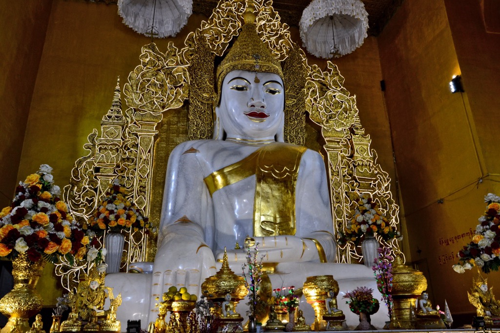 Im Süden von Bago befinden sich vier sitzende Buddhas. Natürlich gibt es in Myanmar viele Buddha-Statuen und eine ist größer, schöner oder goldener als die andere, aber diese Kyaikpun-Buddhas sind etwas Besonderes. Sie sitzen Rücken an Rücken und schauen in die vier Kardinalpunkte. Der eine, der nach Norden schaut, ist der aktuelle Buddha Gautama und die anderen drei sind seine Vorgänger. Die Statuen stammen ursprünglich aus dem 15. Jahrhundert, wurden jedoch in den letzten Jahren mit leuchtenden Fingernägeln, weißer Haut und tiefroten Lippen restauriert.