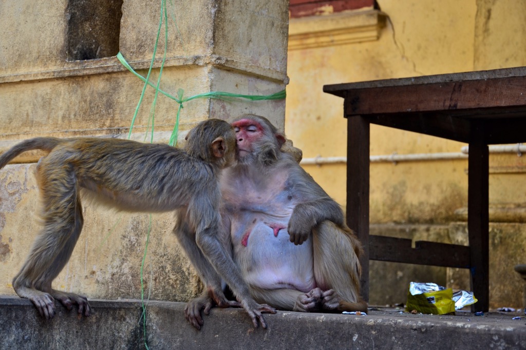 Es ist nicht zu empfehlen beim Aufstieg etwas zu essen oder selbst zu trinken. Denn das wäre schneller als das man schauen kann, von einem der frechen Affen aus der Hand gerissen worden. Ein Schild auf der Treppe warnt sogar davor Sonnenbrille zu tragen, da die Affen sich darin spiegeln. Aber die kleinen Tempel oben auf dem Berg und die Aussicht von oben waren der herausfordernde Aufstieg definitiv wert.