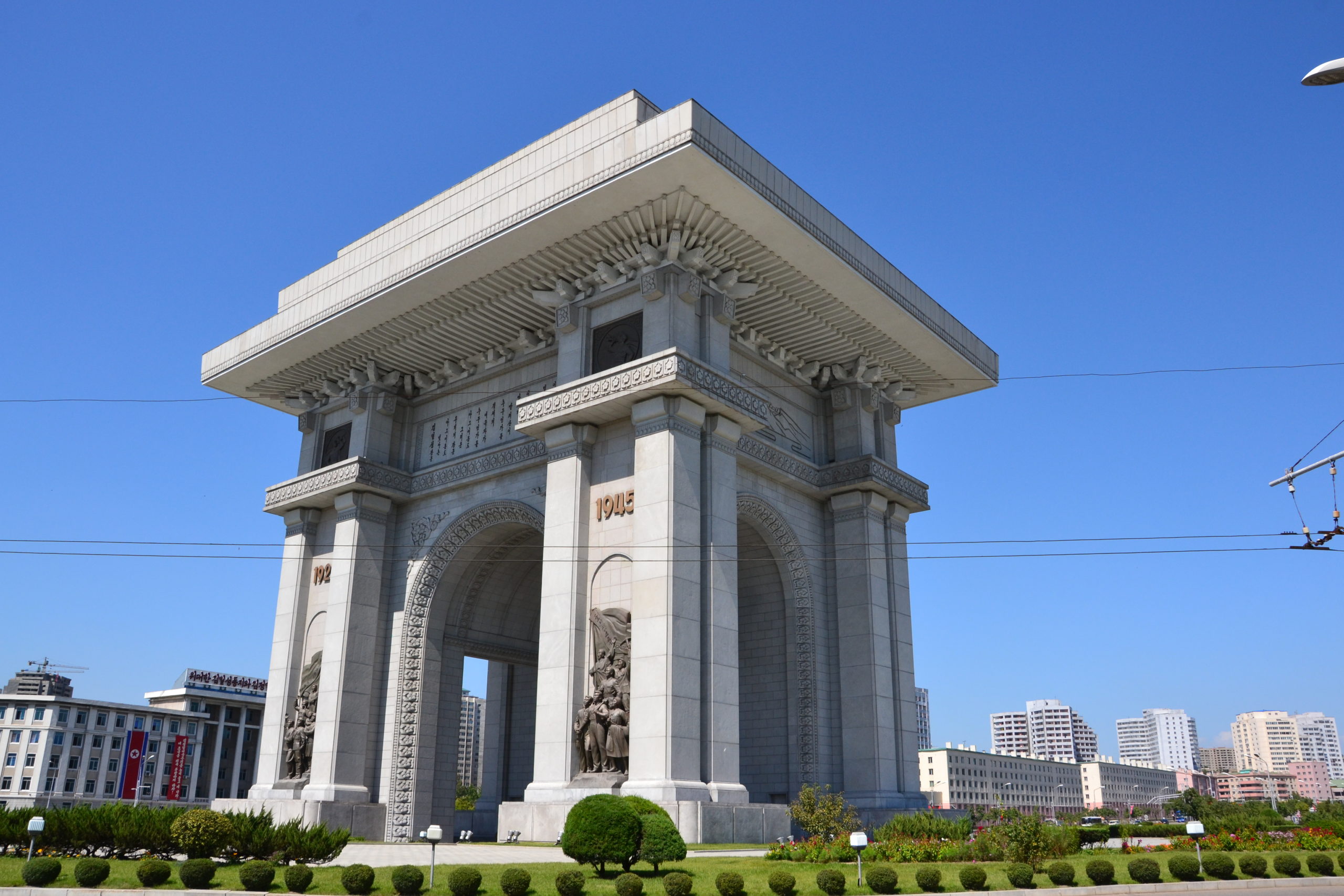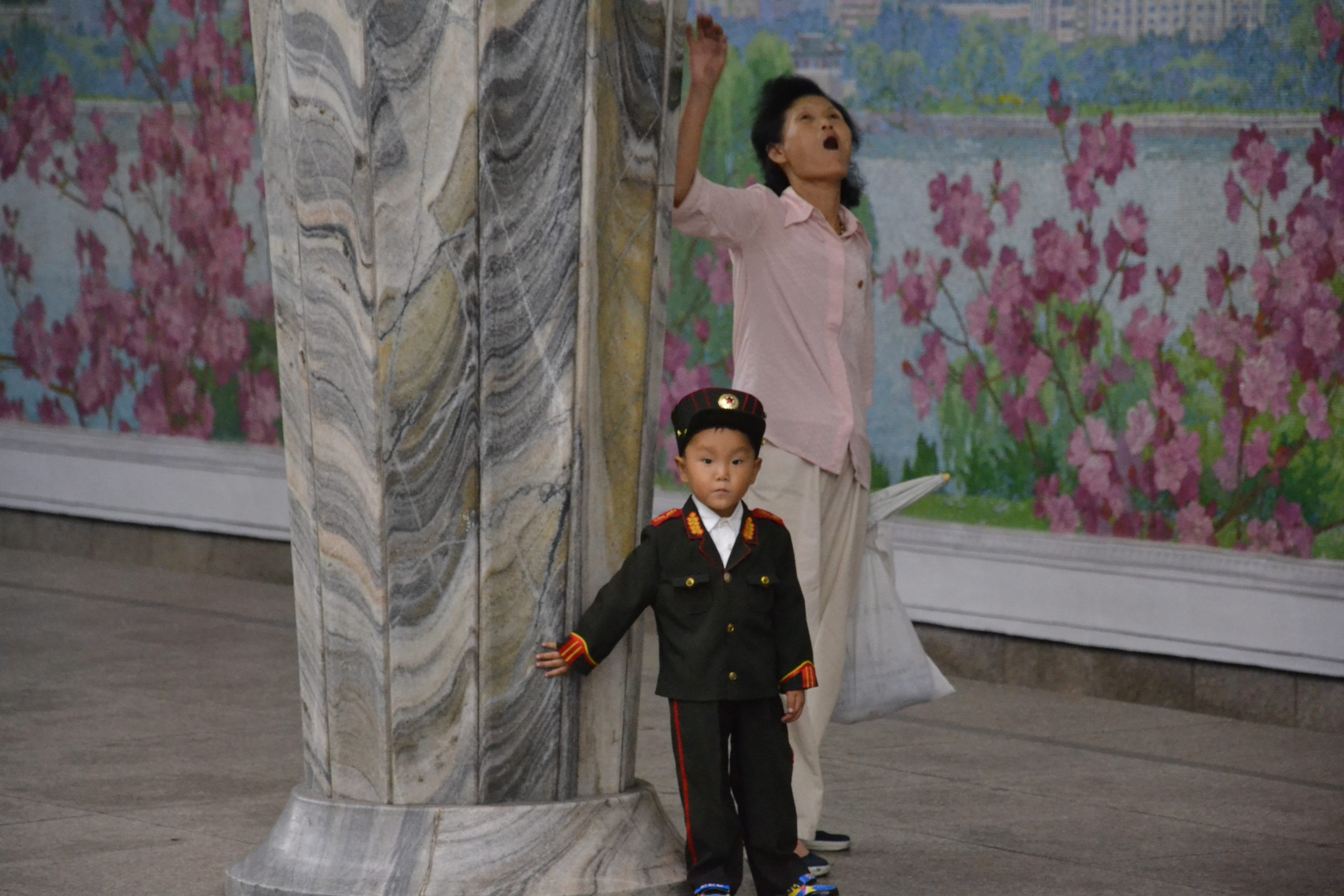 The last stop was at the triumphal arch in Pyongyang. It is said to be the largest victory arch on the planet. This one celebrates the victory over the Japanese and the return of the general Kim Il Sung to his home town. In the park next to the triumphal arch