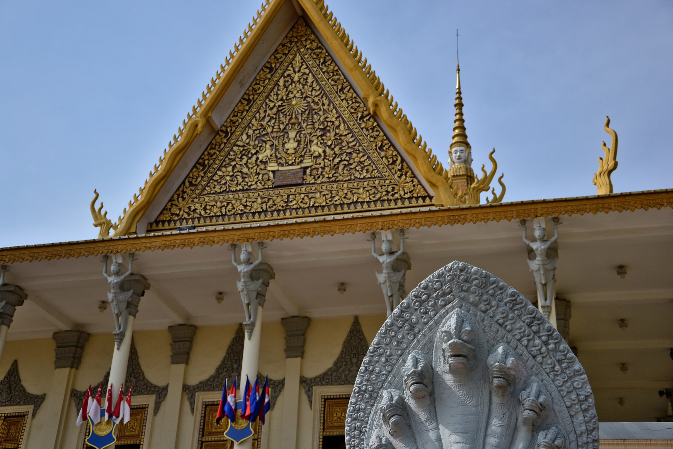 Der königliche Palast wurde 1813 erbaut und besteht aus mehreren kleineren Gebäuden wie dem Thronsaal. Da die Familie des Königs noch im Palast lebt, sind einige Teile für Besucher geschlossen, aber die offenen Gebäude sind wunderschön. Ein Gebäude wurde im französischen Stil erbaut, da es ein Geschenk von Napoelon III an den kambodschanischen König war. Auch ein kleines Modell von Angkor Wat kann in einem der Gärten besichtigt werden.