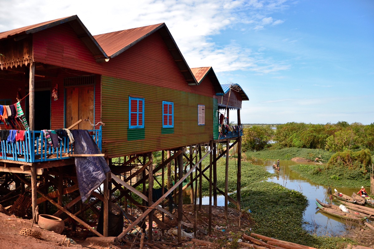 Die Nähe der Häuser zum Wasser variiert je nach Jahreszeit. Am Ende der Regenzeit steigt der See nach anhaltenden starken Regenfällen an, so dass die Straßen nur mit dem Boot erreichbar sind, die Stelzen der Häuser unter Wasser stehen und die Leitern zum Erreichen des Hauses nicht mehr benötigt werden. In der Trockenzeit hingegen müssen die Menschen mehrere Meter absteigen, um das Wasser zu erreichen. Dieses wahrhaft authentische kambodschanische Leben zu sehen, war eine umwerfende Erfahrung.