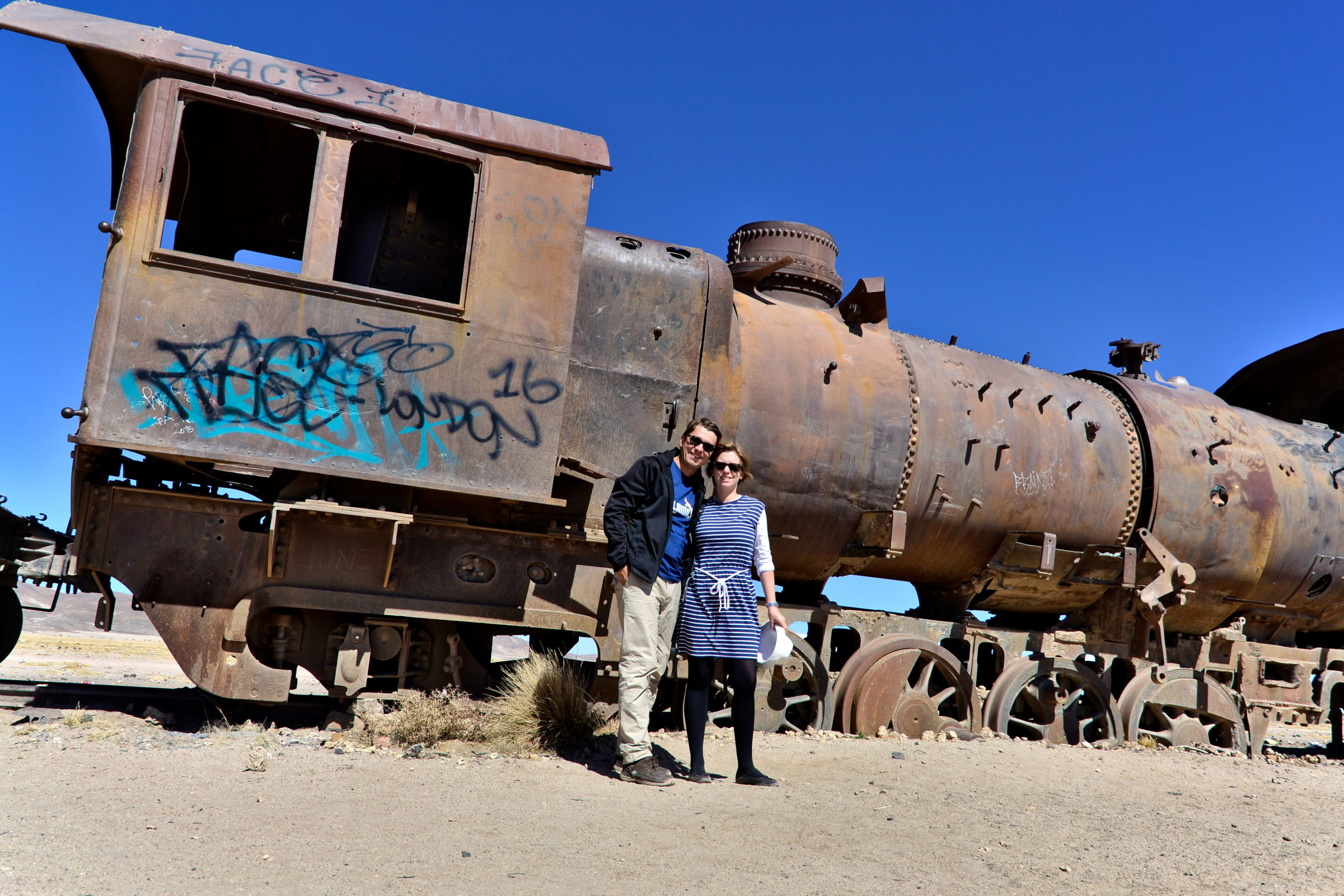 Neben dem beliebten Salzsee gibt es in Uyuni einen Zugfriedhof, auf dem eine sehr große Anzahl historischer Dampflokomotiven in der Wüste vor sich hin rosten. Einige von ihnen sind ungefähr 100 Jahre alt. Leider gibt es kein Museum für sie. Und deshalb wurden Stücke von den Lokomotiven ausgebaut und für Möbel in Bars um Uyuni oder für Statuen in der Innenstadt verwendet. Es macht wirklich Spaß, in die Züge zu steigen und durch dieses Museum mit freiem Eintritt zu gehen.