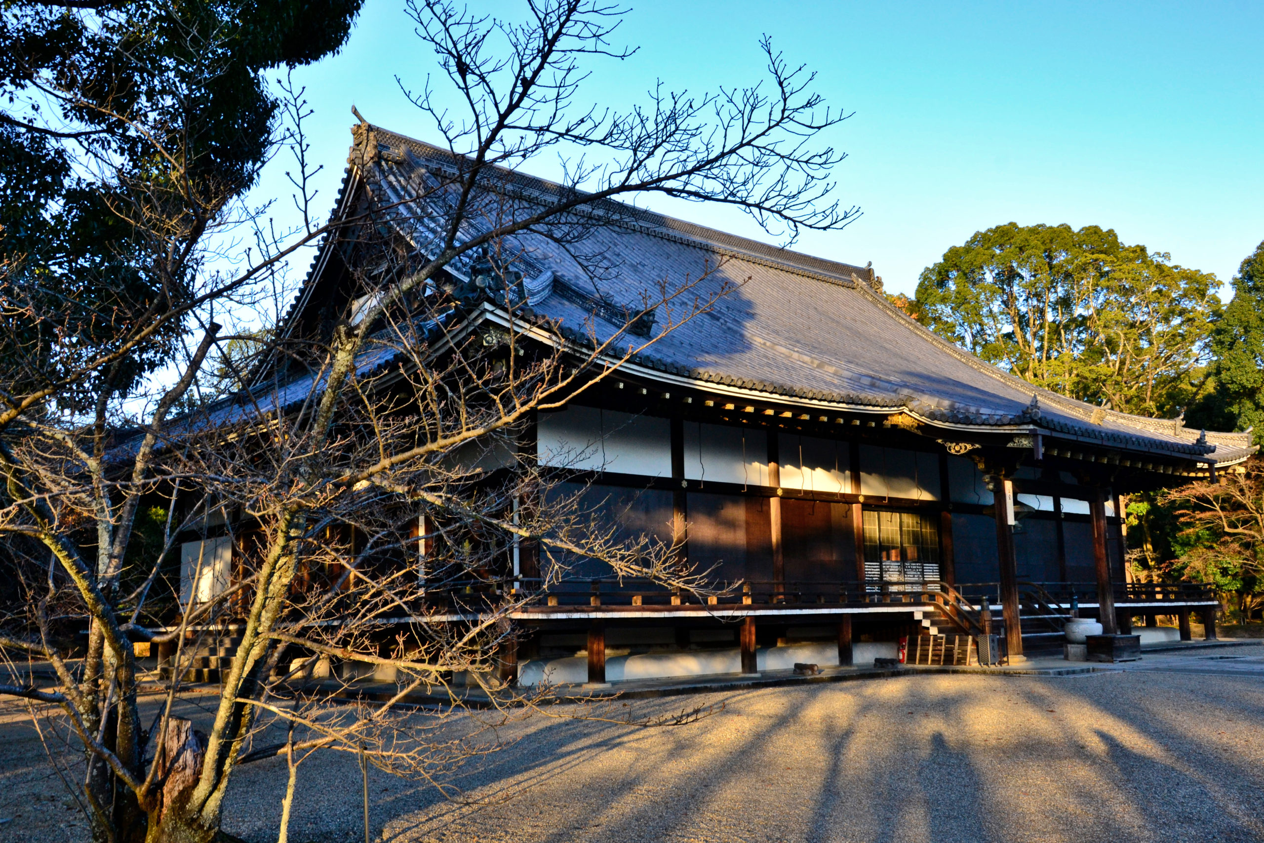 Ein schöner und ziemlich leerer Zen-Tempel ist Ryoan-ji. Die langen Gänge mit den typisch japanischen Fenstern und die Gärten eignen sich sehr gut zum Fotografieren.