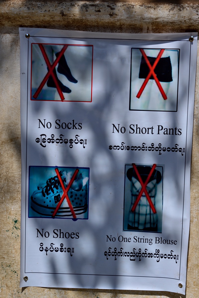 Die Reise führte uns durch karge Landschaften mit vielen Bettlern entlang der Strecke. Seit 1962 regiert das Militär in Myanmar mit dem Fokus auf dem Wohlstand bestimmter Bevölkerungsgruppen. Die übrige Bevölkerung muss für dieses Missmanagement mit Armut bezahlen. Vor allem der Name Myanmar wurde 1989 von der Regierung willkürlich ohne Beteiligung des Volkes eingeführt.