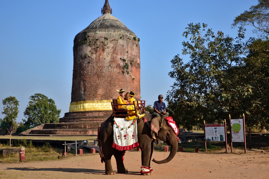 Unsere Reise nach Pyay war ein großes Abenteuer. Von Yangon aus kann Pyay mit dem Bus erreicht werden (ca. sieben Stunden Fahrt). Sri Ksetra, nur wenige Kilometer von Pyay entfernt, ist eine alte Hauptstadt. Aus dem 9. Jahrhundert, als das Zentrum nach Bagan verlegt wurde, sind nicht viele Gebäude erhalten. Die Baw Baw Gyi Pagode blieb mit ihrer 43 Meter hohen Stupa erhalten. Der letzte König hat einige Relikte weggenommen und zu einer der Pagoden in Bagan gebracht. Um weiteren Diebstahl zu verhindern, beobachtet die „Grand Lady“ die Pagode auf einer Schaukel. Fromme Pilger spenden der Grand Lady Schals.