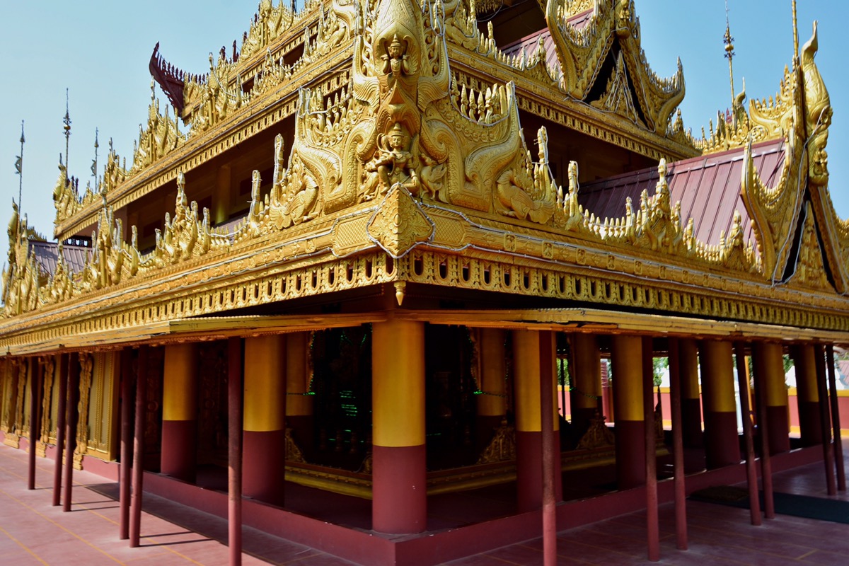 Der goldene Königspalast in Mandalay wurde 1857 erbaut und umfasst mehr als 130 Gebäude. Da der König sich davor fürchtete, seinen Palast zu verlassen, wurde ein 55 Meter hoher Turm errichtet, der nur dazu diente das Leben draußen zu beobachten. Die meisten Teile des Palastes wurden jedoch von der Kolonialmacht sowie während des Krieges gegen die japanische Besatzungsmacht zerstört. Für die Restaurierung wurden Wellblechdächer und goldene Farbe anstelle von Blattgold verwendet, so dass der Originalzustand nicht mehr erkennbar ist…