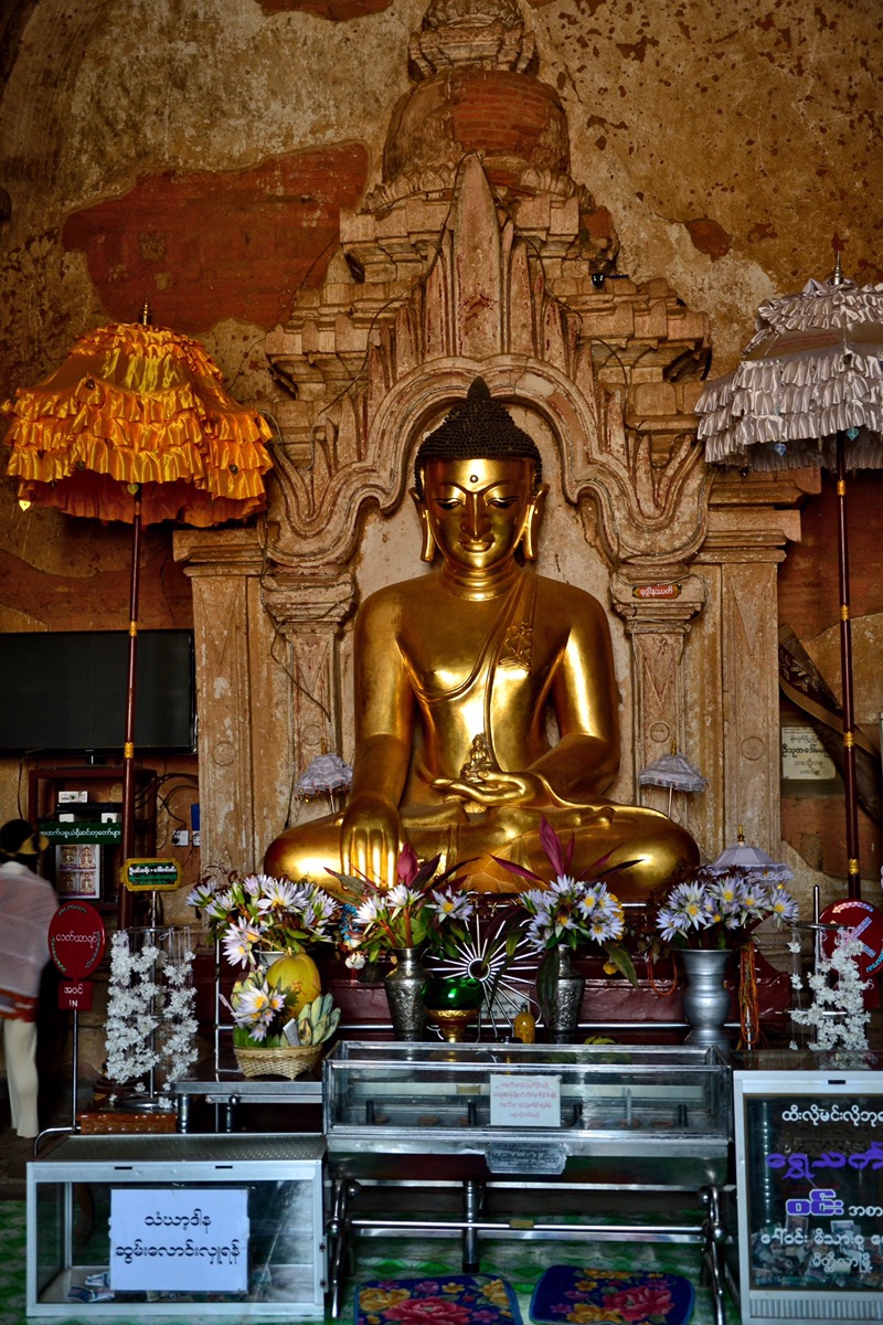 Auch nach der Zeit, als Bagan eine königliche Stadt war, spendeten birmanische Könige Glocken und Gold für die Stupas, und im 18. Jahrhundert wurden sogar zwei neue Tempel gebaut. In den Tempeln gibt es unzählige Buddha-Statuen in vielen verschiedenen Größen und Farben. Auch wir durften in einigen Tempeln die Buddha Statuen mit dem in Myanmar hergestellten Blattgold beglücken.