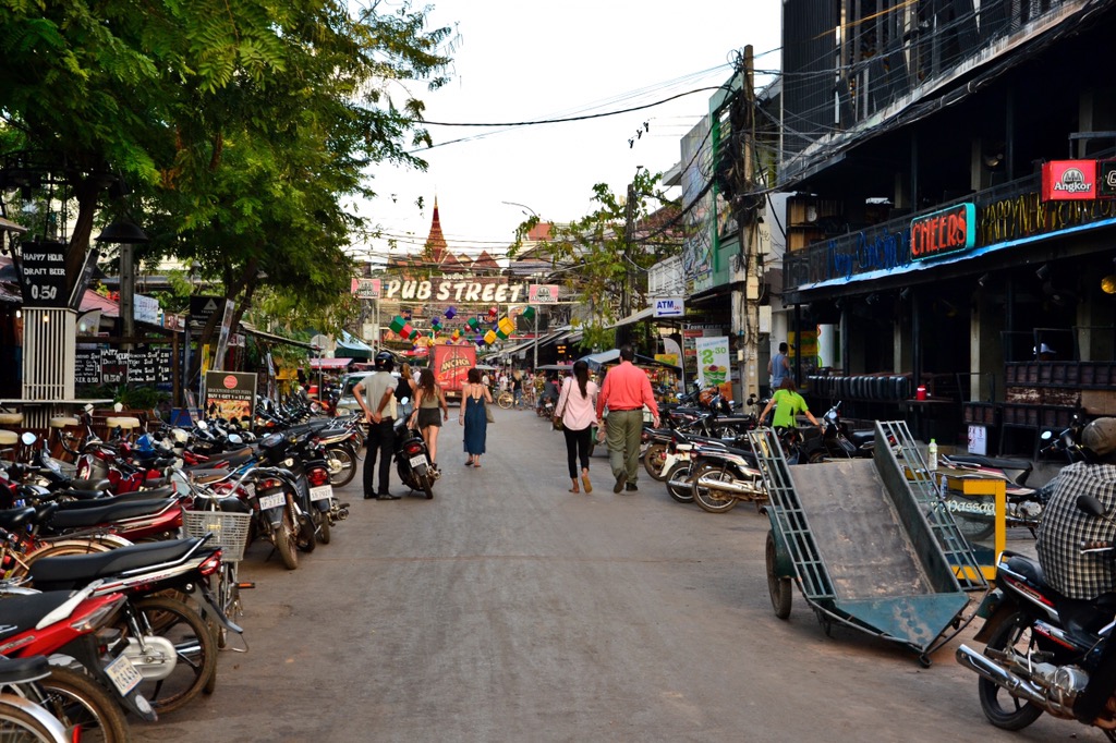 Die Stadt Siem Reap liegt in der Nähe von Angkor und ist daher ein sehr touristischer Ort. Rund 2,1 Millionen Menschen haben Angkor im Jahr 2015 besucht. Es gibt eine große Auswahl an verschiedenen Restaurants, die traditionelle Khmer-Küche für 1 bis 3 Dollar pro Gericht servieren. Auch die Preise für Getränke, insbesondere Bier und Cocktail, sind recht günstig. Ein Viertel Liter Fassbier für 0,50 Dollar und Cocktails für 1 Dollar. Darüber hinaus findet ihr in der Kneipenstraße viele touristische Läden wie Fußmassage, Bierhallen und Pubs.