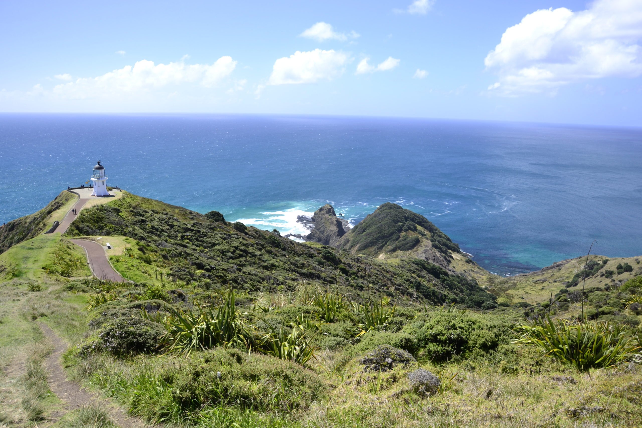 Wie starteten an den Ostbuchten der Nordinsel in der Nähe von Auckland. Kap Reinga im hohen Norden war unser erstes Ziel. Ihr erreicht Kap Reinga nach ca. 90 km von Kaitaia aus. Kap Reinga mit seinem Leuchtturm ist fast der nördlichste Punkt Neuseelands. Es gibt nur eine andere Bucht, die etwas weiter als dieser Punkt ist, diese ist aber nicht zugänglich. Außerdem treffen sich an dieser Stelle die Tasmanische See und der Pazifische Ozean. Infolgedessen können Wellen von bis zu zehn Metern Höhe entstehen (aber nicht als wir dort waren).