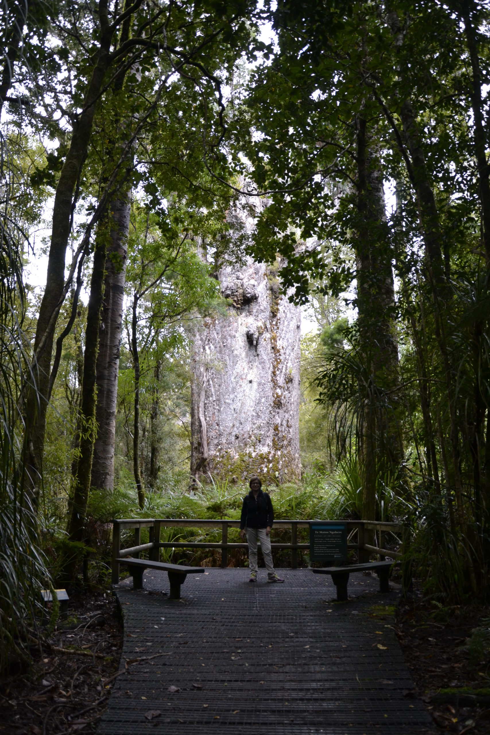 Auf dem Weg vom Kap Reinga nach Auckland machten wir in Waipoua Halt, um einen Blick auf diese beeindruckenden Bäume zu werfen. Dieser Wald mit typischen Kauri-Bäumen liegt an der Westküste Neuseelands. Die Maori verwendeten Kauri-Holz zum Bootsbau, zum Schnitzen und zum Bauen von Häusern. Diese Bäume können bis zu 50 Meter hoch werden und Baumstämme mit einem Umfang von mehr als 10 Metern haben. In Waipoua lebt vor allem Tane Mahuta, der König des Waldes, und der größte verbliebene Kauri-Baum des Landes. Der tatsächlich 1.500 Jahre alte Tane Mahuta ist 51,5 m groß und hat einen Umfang von 13,77 m.