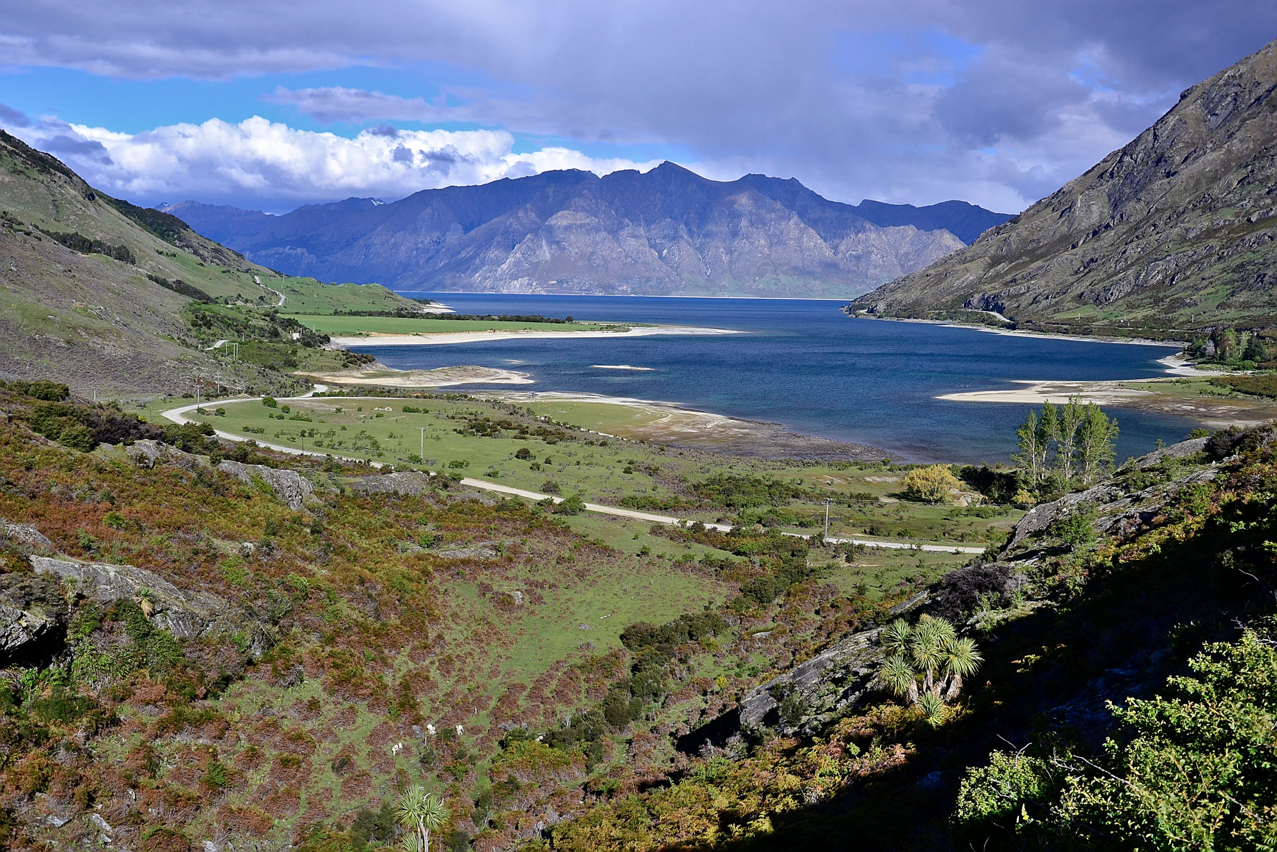 Wenn ihr an Neuseeland denken, denkt ihr vielleicht an schöne, außergewöhnliche und farbenfrohe Landschaften. Und das ist definitiv wirklich wahr. Wir haben niemanden getroffen, der nicht nach Neuseeland reisen möchte. Insgesamt lässt sich sagen, dass dies definitiv auf die unglaublich schöne und unvergleichliche Natur zurückzuführen ist. Die Landschaft ist einzigartig beeindruckend mit intensiven Farben – extrem hellgrünem Gras, hellblauem Himmel und immer türkisfarbenem Wasser. An dieser Stelle hat sich das Wohnmobil besonders ausgezahlt, da wir an den schönsten Plätzen kochen oder in einer der vielen Buchten übernachten konnten und so das fantastische und unglaubliche Panorama in vollen Zügen genießen. Die Straßen auf der Südinsel sind verglichen mit denen auf der Nordinsel kurviger.