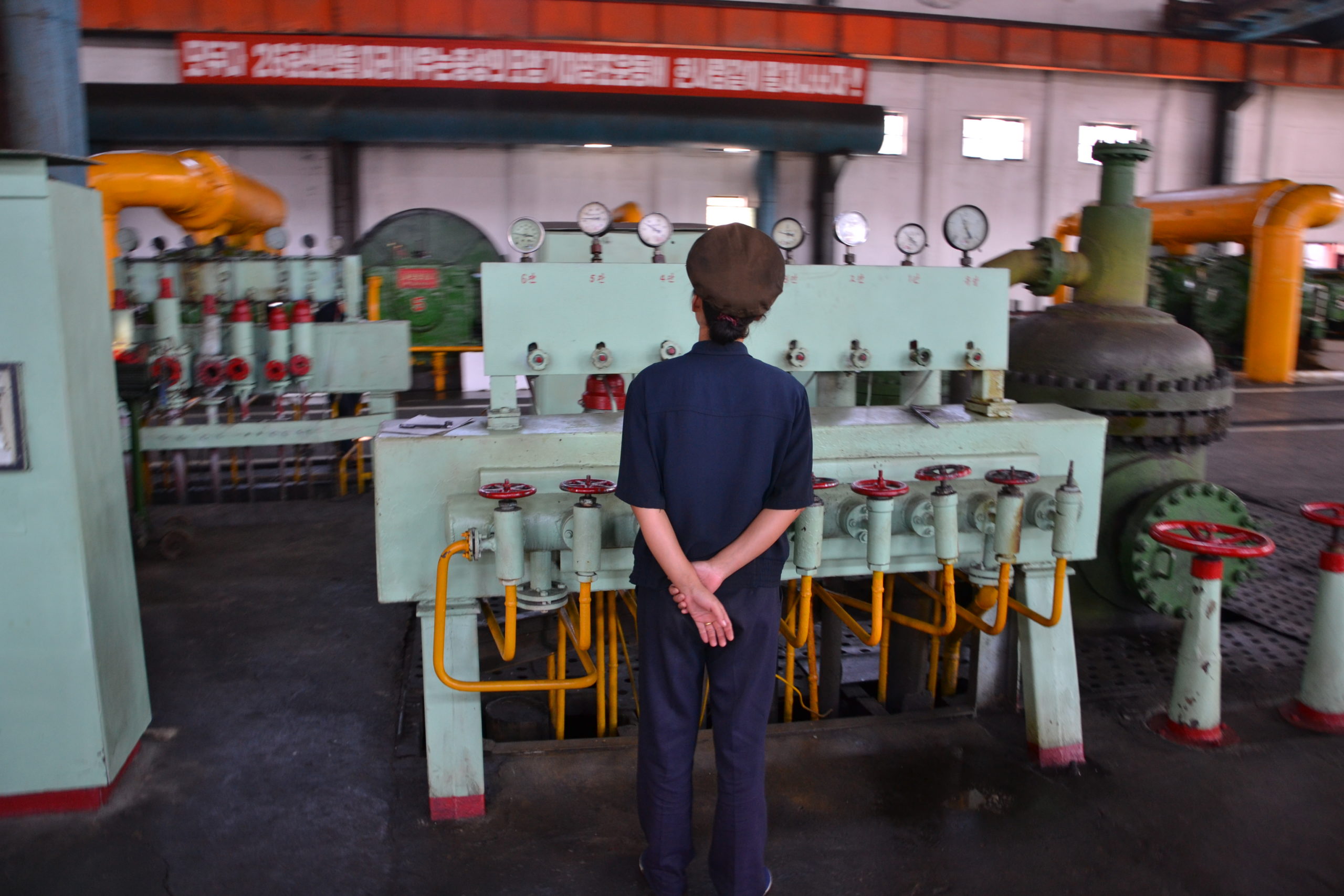 Ähnlich wie in der Mineralwasserfabrik in Nampo besuchten wir in Hamhung eine Fabrik, die schon vor Jahrzehnten gebaut wurde. Diese Fabrik ist jedoch noch in Betrieb und produziert Dünger für die Landwirte – das haben sie uns zumindest gesagt. In unserem Reiseführer haben wir gelesen, dass die Fabriken in Hamhung auch zur Herstellung chemischer Waffen verwendet werden. Beeindruckend für uns waren diese alten Maschinen und Bedienungssäle zur Überwachung des Produktionsprozesses – wie eine Zeitreise von mehr als einem halben Jahrhundert.