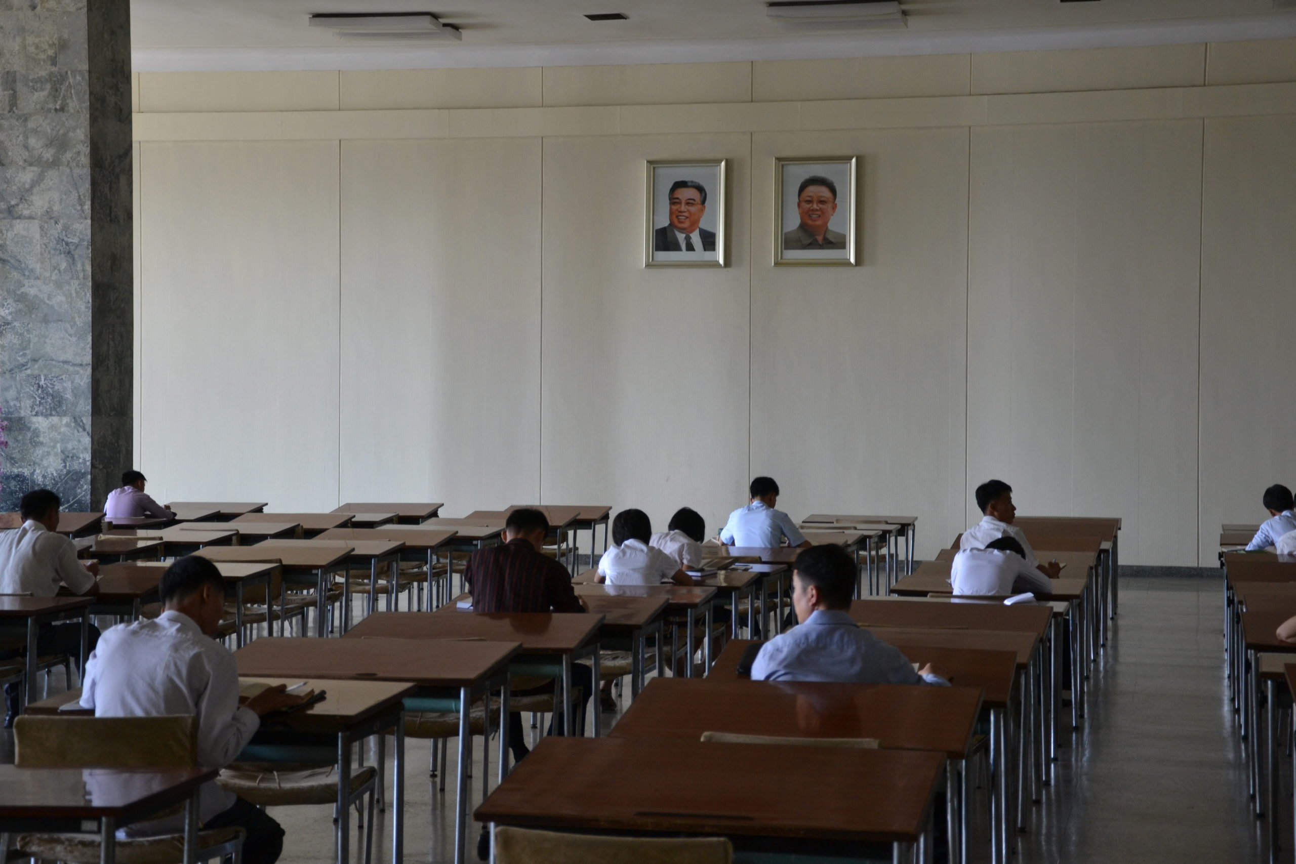 Der erste Punkt auf unserer Reiseplanung war ein Besuch im Grand People’s Study House. Es ist eine Bibliothek und ein akademisches Zentrum für erwachsene Lernende. Dieses großartige Gebäude ist im koreanischen Stil erbaut. Vom Balkon aus hatten wir einen beeindruckenden Blick über den zentralen Platz mit seinen Regierungsgebäuden.