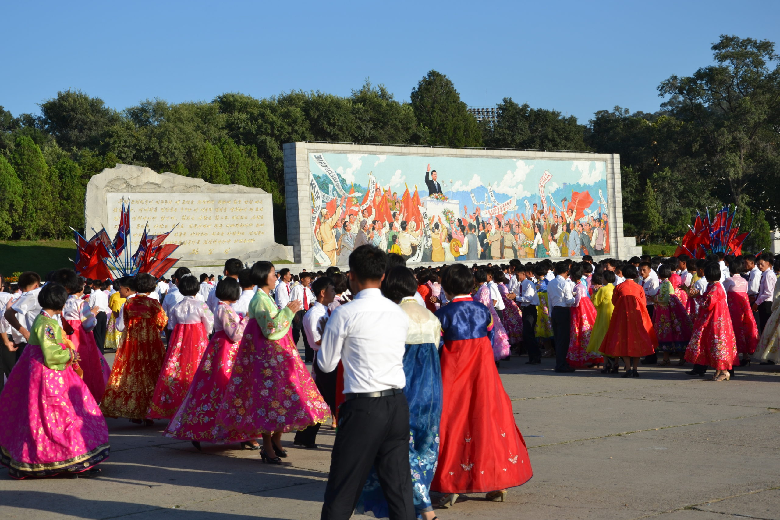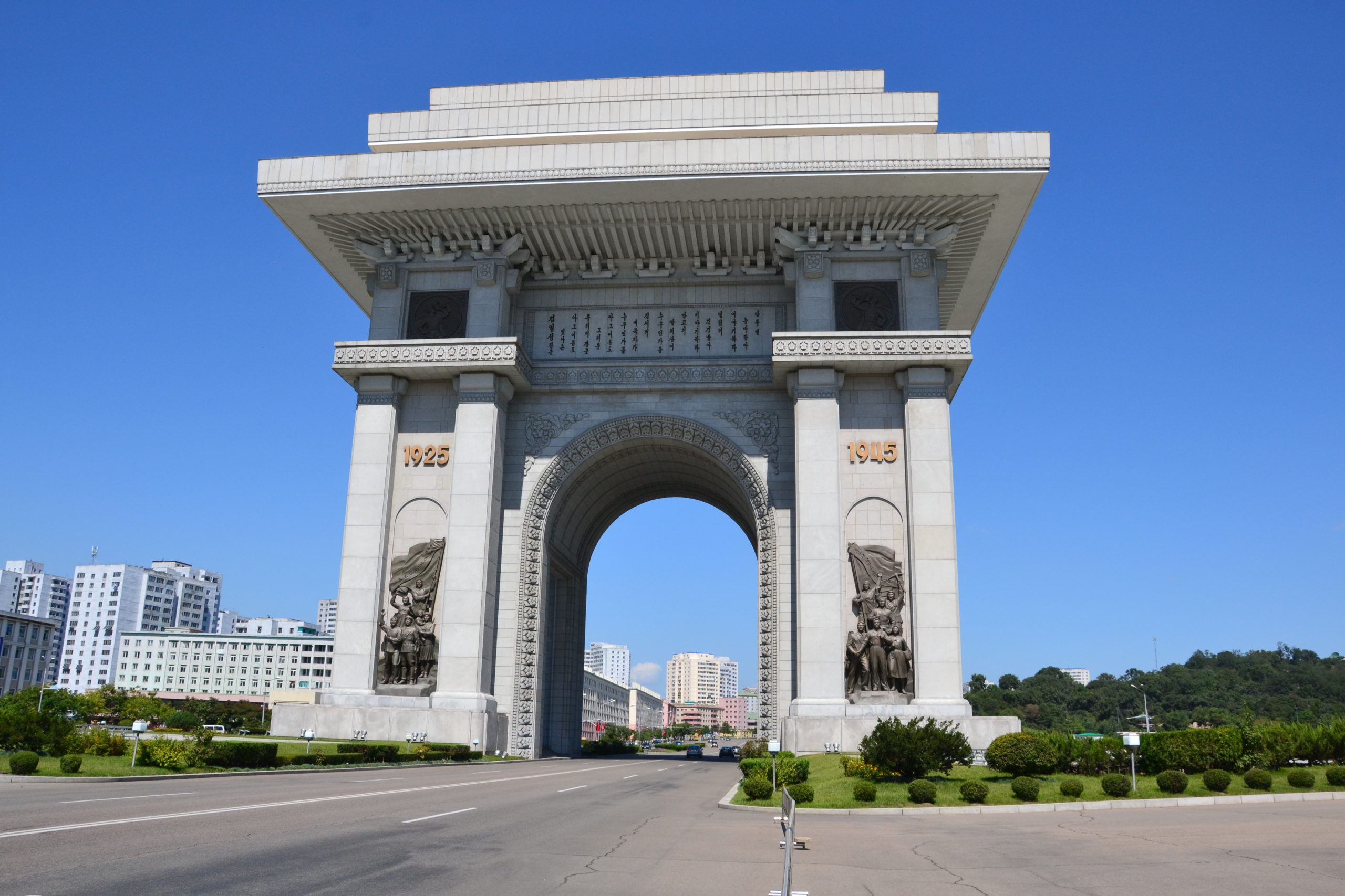 Der letzte Halt war am Triumphbogen in Pjöngjang. Es soll der größte Siegesbogen der Welt sein. Mit diesem wird den Sieg über die Japaner gefeiert und die Rückkehr des Generals Kim Il Sung in seine Heimatstadt. Im Park neben dem Triumphbogen wurden wegen des Nationalfeiertags Tänze aufgeführt in traditionellen Kleidern.