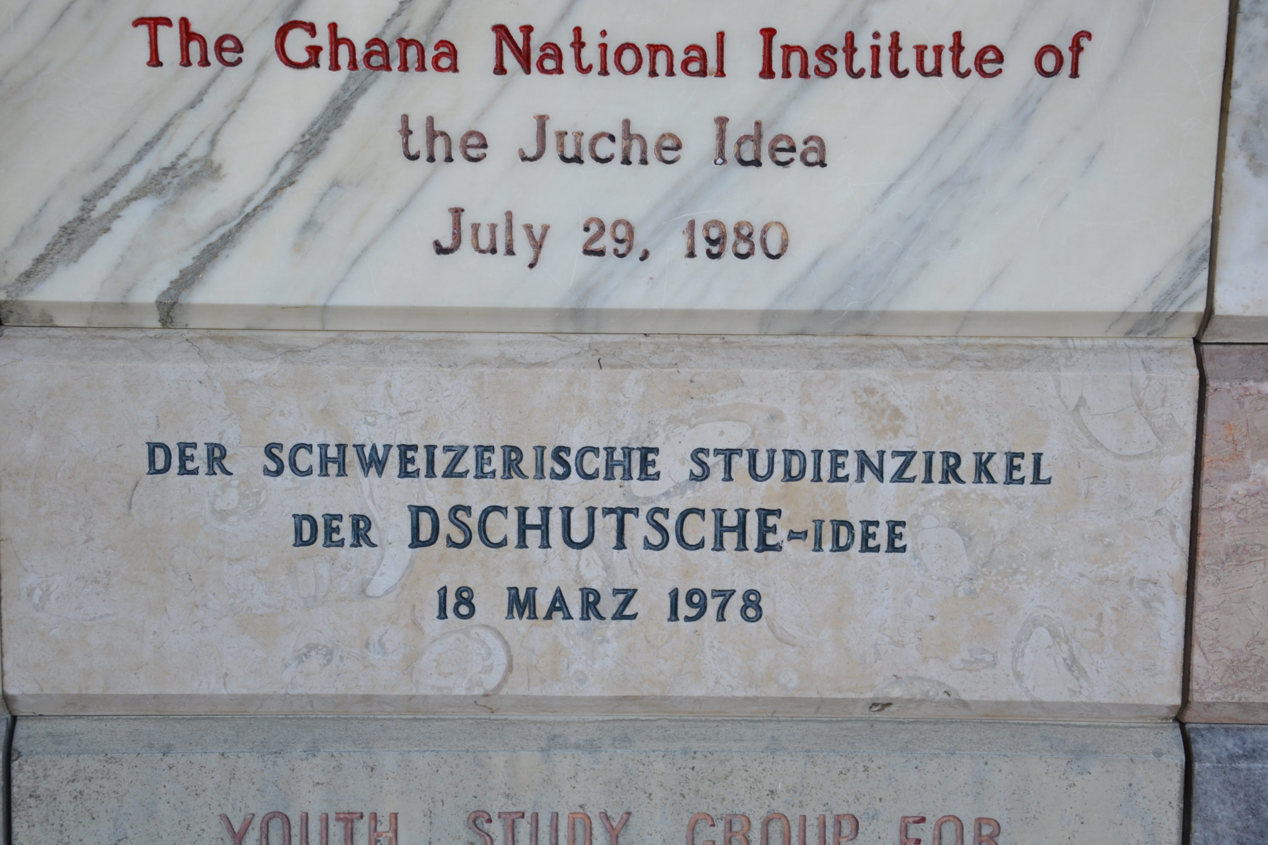 Auf der anderen Seite des Flusses Taedong – gegenüber dem Grand People’s Study House – haben wir den Juche Tower besucht. Dieser Turm wurde zum 70. Geburtstag von Kim Il Sung erbaut und gilt mit 170 Metern als der höchste aus Stein gebaute Turm der Welt. Der Eingang des Turms enthält viele Schilder von Anhängern der Juche-Ideologie und von Studiengruppen. Wir sind mit dem Aufzug nach oben gefahren und hatten einen beeindruckenden Blick über Pjöngjang.
