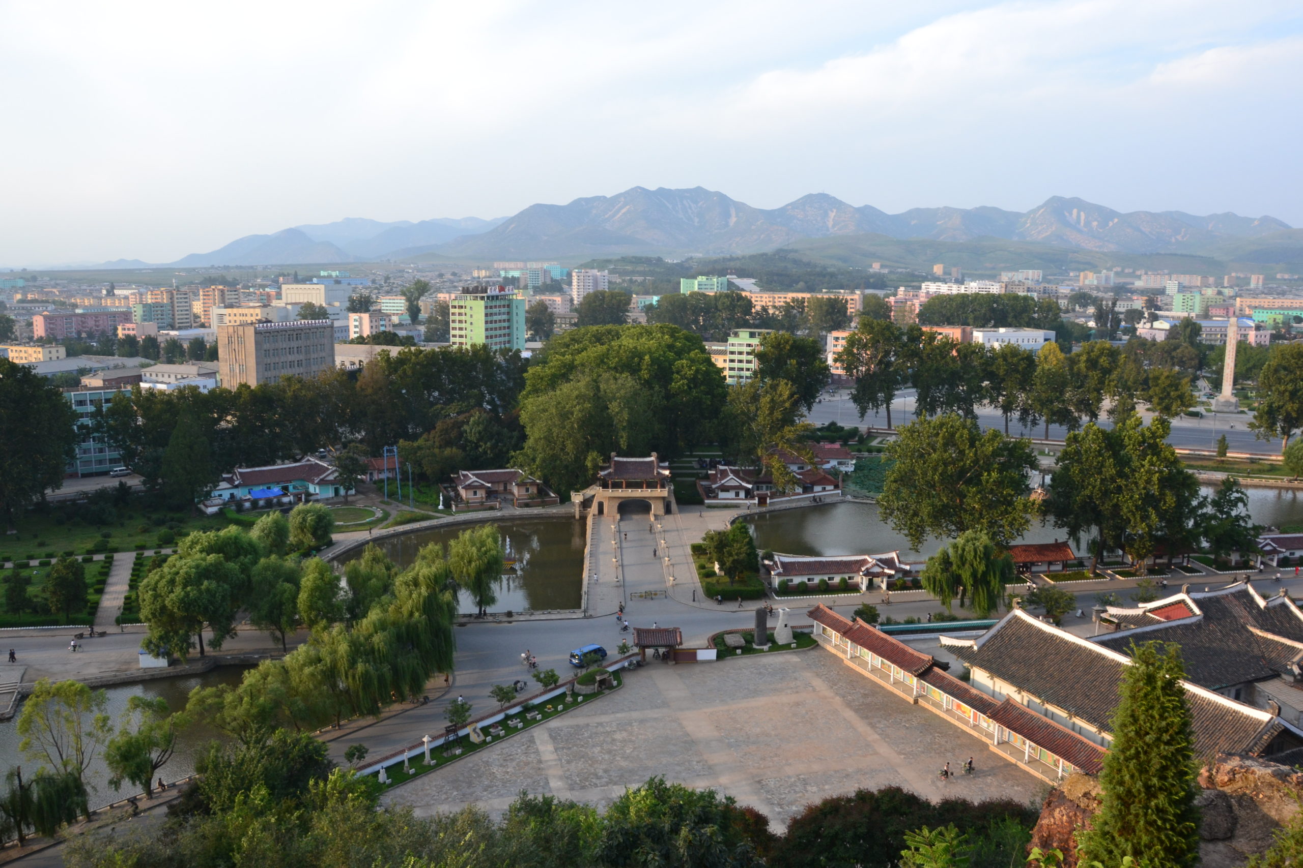 Auf dem Weg zum Strand in Nampo hielten wir für eine Übernachtung in Sariwon an. Wir gingen den Hügel hinauf in den örtlichen Volkspark und genossen die Aussicht von der Bergpagode.