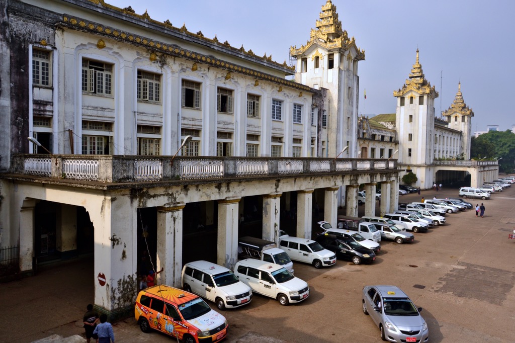Bago ist nur 80 km von Yangon entfernt und so beschlossen wir, einen Zug zu nehmen, um dorthin zu gelangen. In unserem Zug waren konstant die Fenster offen (und ließen sich nicht schließen) und auch die Tür schloss sich während der Fahrt nicht, aber aufgrund der geringen Geschwindigkeit des Zuges war es so eine angenehme Fahrt. Der Bahnhof in Yangon sieht aus wie ein ursprüngliches Erbe aus der Kolonialzeit.
