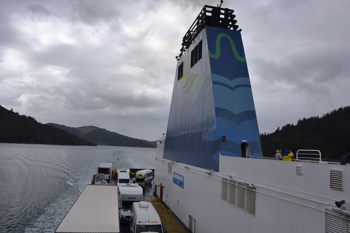 Die einzige Verbindung zwischen der Nord- und Südinsel ist eine 3,5-stündige Fahrt mit der Fähre über die Cook Street. Als wir in Wellington bei schweren stürmischen Wetter starteten wurden einige Passagiere auf der Fähre seekrank. Auch ich konnte auf der Fähre kein Buch lesen, da die Fähre sehr schwankte. Aber nach einer Stunde wurde es besser, so dass wir diese Auszeit außerhalb des Wohnmobils nutzen konnten, weiter unsere Tour auf der Südinsel zu planen.