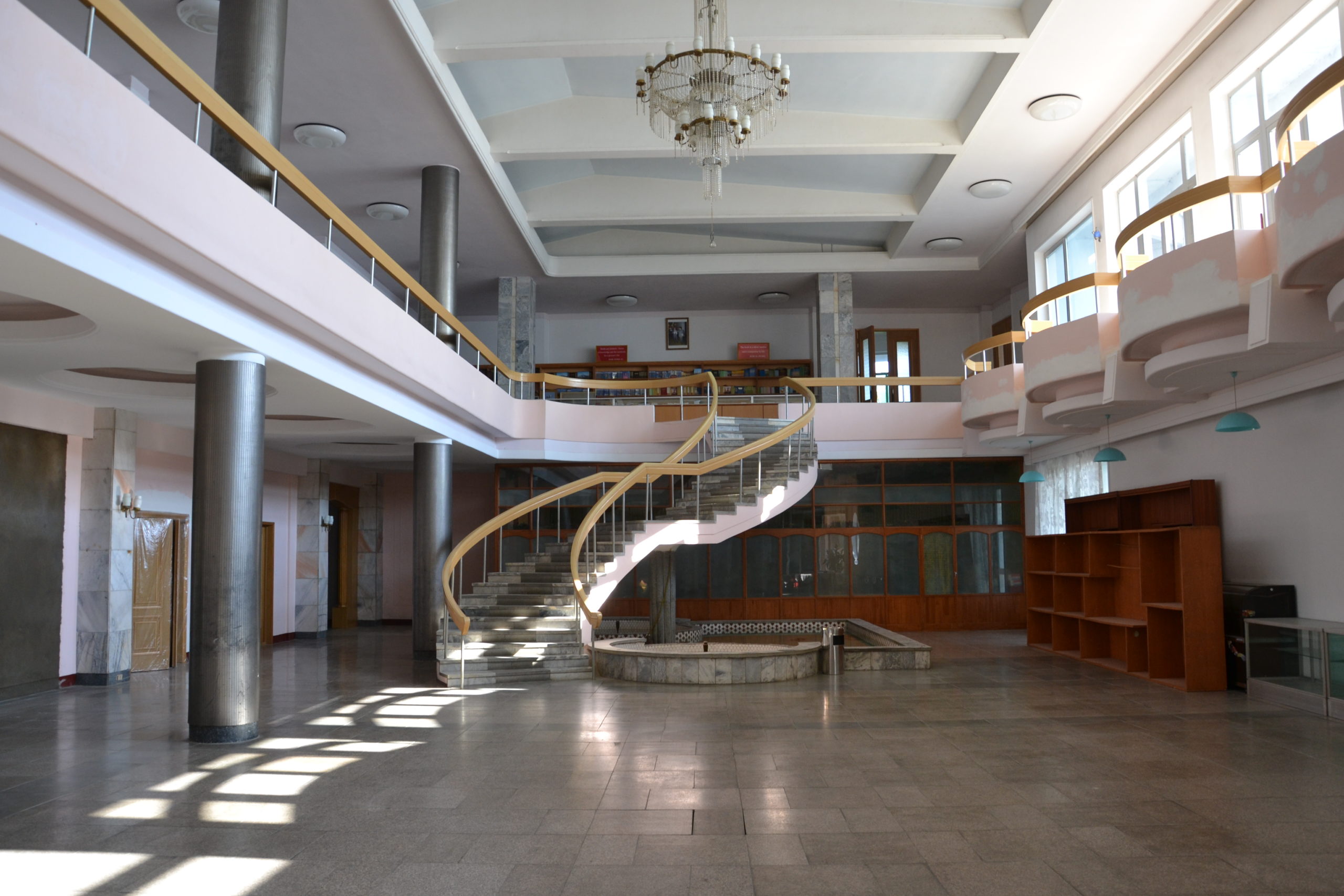 Der erste Punkt auf unserer Reiseplanung war ein Besuch im Grand People’s Study House. Es ist eine Bibliothek und ein akademisches Zentrum für erwachsene Lernende. Dieses großartige Gebäude ist im koreanischen Stil erbaut. Vom Balkon aus hatten wir einen beeindruckenden Blick über den zentralen Platz mit seinen Regierungsgebäuden.