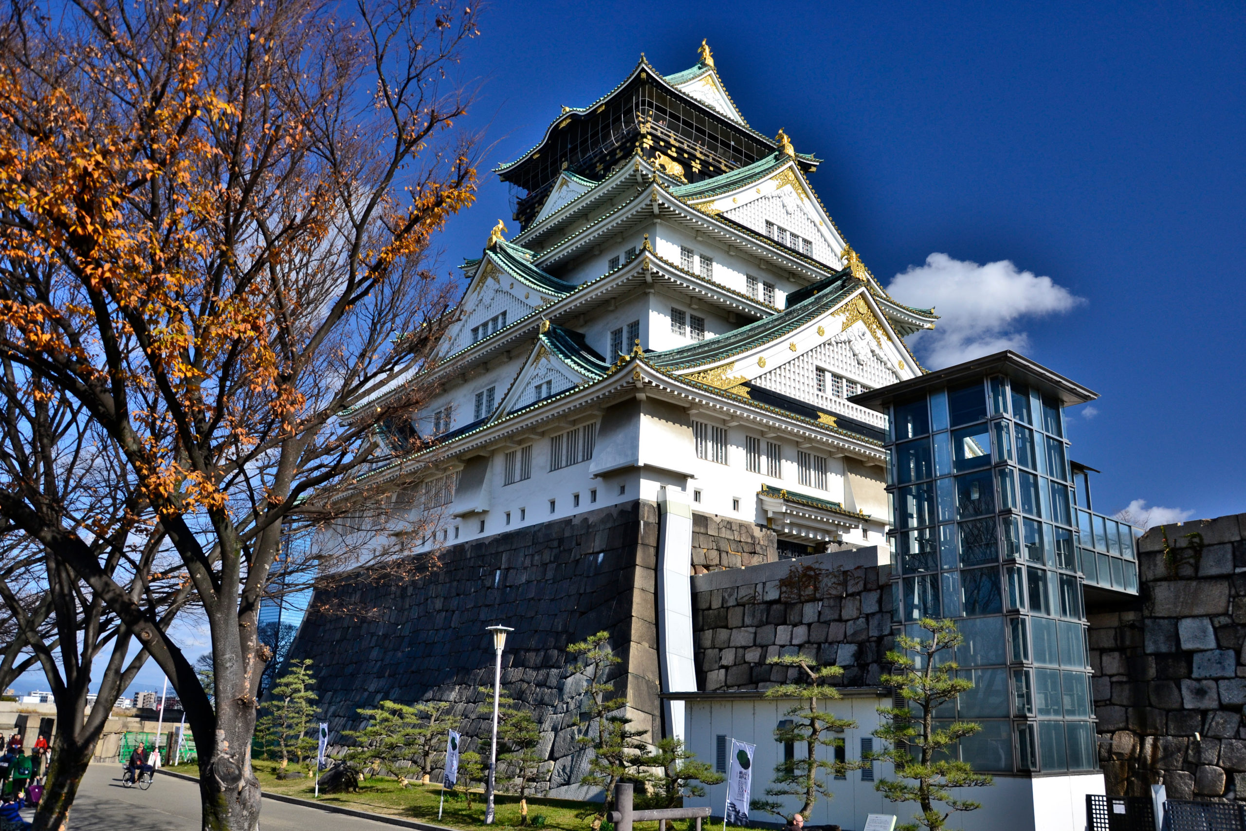 Unseren letzten Tag in Japan haben wir in Osaka verbracht, einer großen Handelsstadt aufgrund ihrer Industrie und ihres Hafens. Osaka hat viele Flüsse und Kanäle und ist daher auch als „Venedig des Ostens“ und „Stadt der 808 Brücken“ bekannt. Gegenüber den riesigen Wolkenkratzern, wie dem blauen Kristallturm, befindet sich auf einem Hügel eine riesige japanische Burg. Die Burg von Osaka stammt ursprünglich aus dem Ende des 16. Jahrhunderts, wurde jedoch wie andere kulturelle Gebäude in Japan mehrmals zerstört, so dass die heutige Burg aus dem 20. Jahrhundert stammt. Leider hatten wir nur einen halben Tag in Osaka, werden aber das nächste Mal länger in Osaka bleiben.