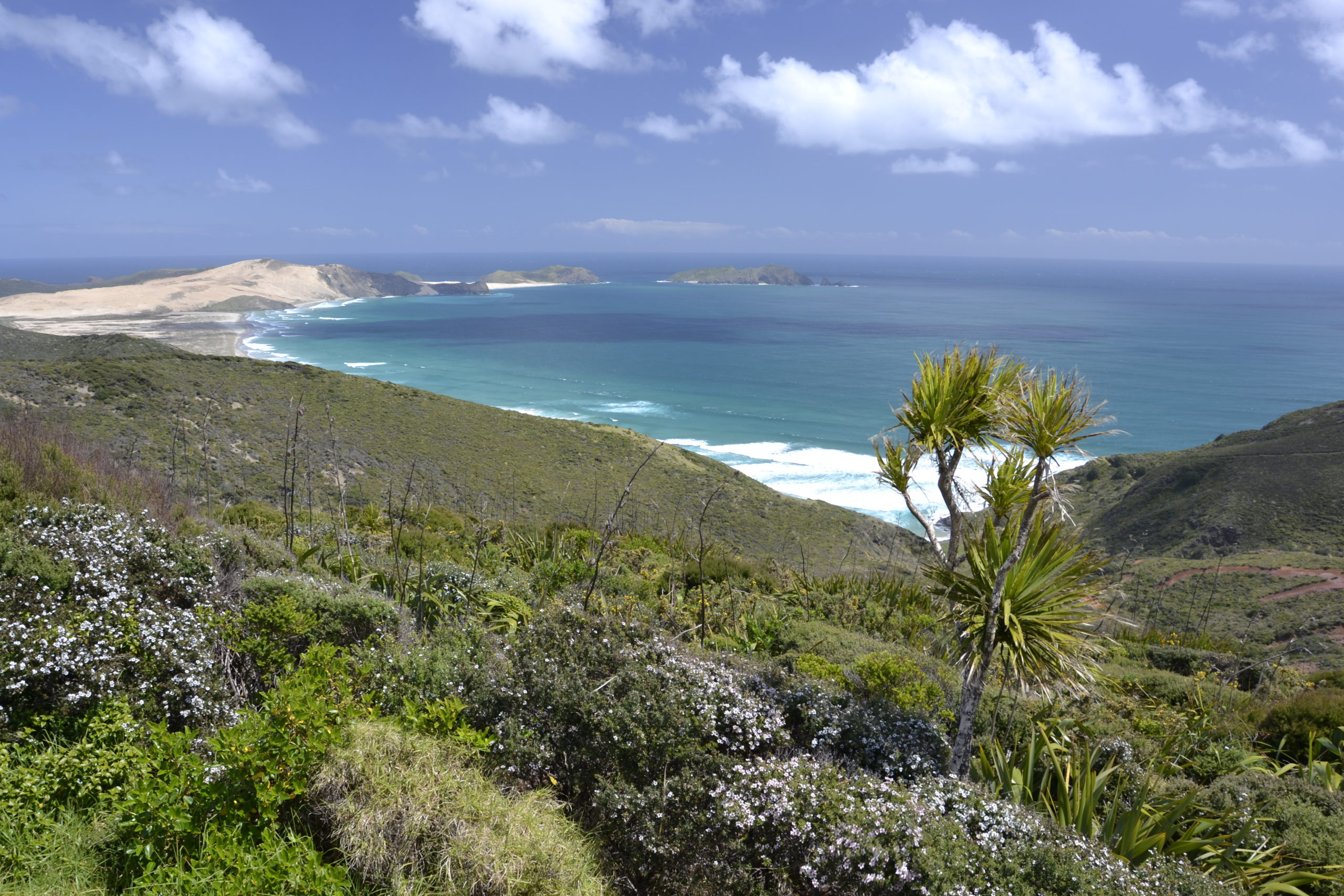 Wie starteten an den Ostbuchten der Nordinsel in der Nähe von Auckland. Kap Reinga im hohen Norden war unser erstes Ziel. Ihr erreicht Kap Reinga nach ca. 90 km von Kaitaia aus. Kap Reinga mit seinem Leuchtturm ist fast der nördlichste Punkt Neuseelands. Es gibt nur eine andere Bucht, die etwas weiter als dieser Punkt ist, diese ist aber nicht zugänglich. Außerdem treffen sich an dieser Stelle die Tasmanische See und der Pazifische Ozean. Infolgedessen können Wellen von bis zu zehn Metern Höhe entstehen (aber nicht als wir dort waren).