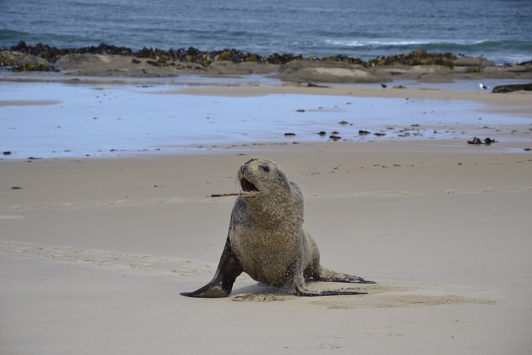 Die Route entlang der Südküste der Südinsel wird von typischen Farnwäldern, Leuchttürmen, einsamen Stränden und großen Wasserfällen dominiert. Neben den Robben hatten wir das Glück, einige größere Seelöwen aus einer Entfernung von nur einem Meter zu sehen.