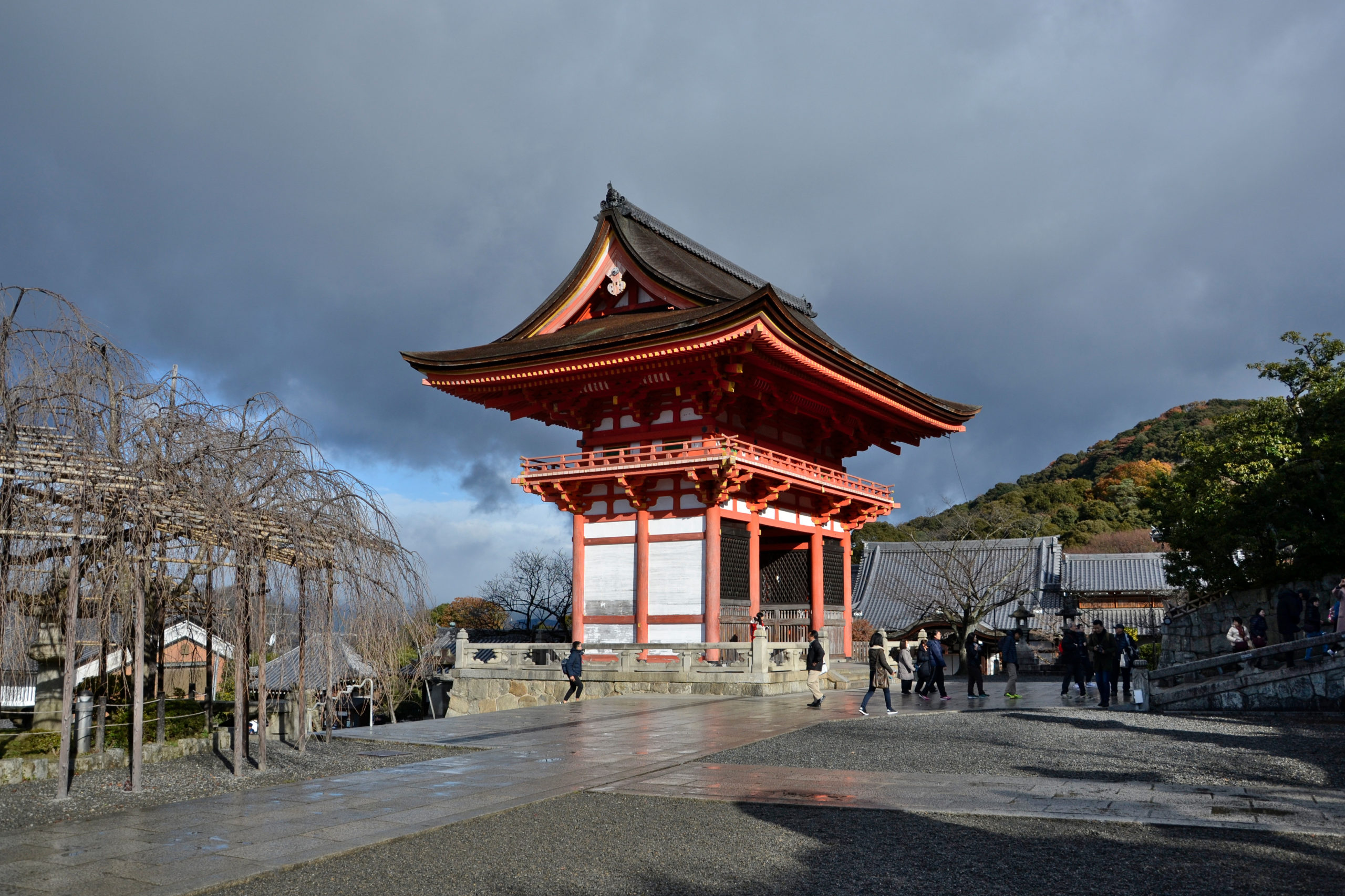 Wir haben am Morgen mit einem Spaziergang den Hügel hinauf zum Kiyomizu-dera-Tempel begonnen. Von dort genießt man einen guten Blick über Kyoto. Wie andere Tempel besteht auch dieser aus mehreren Gebäuden.