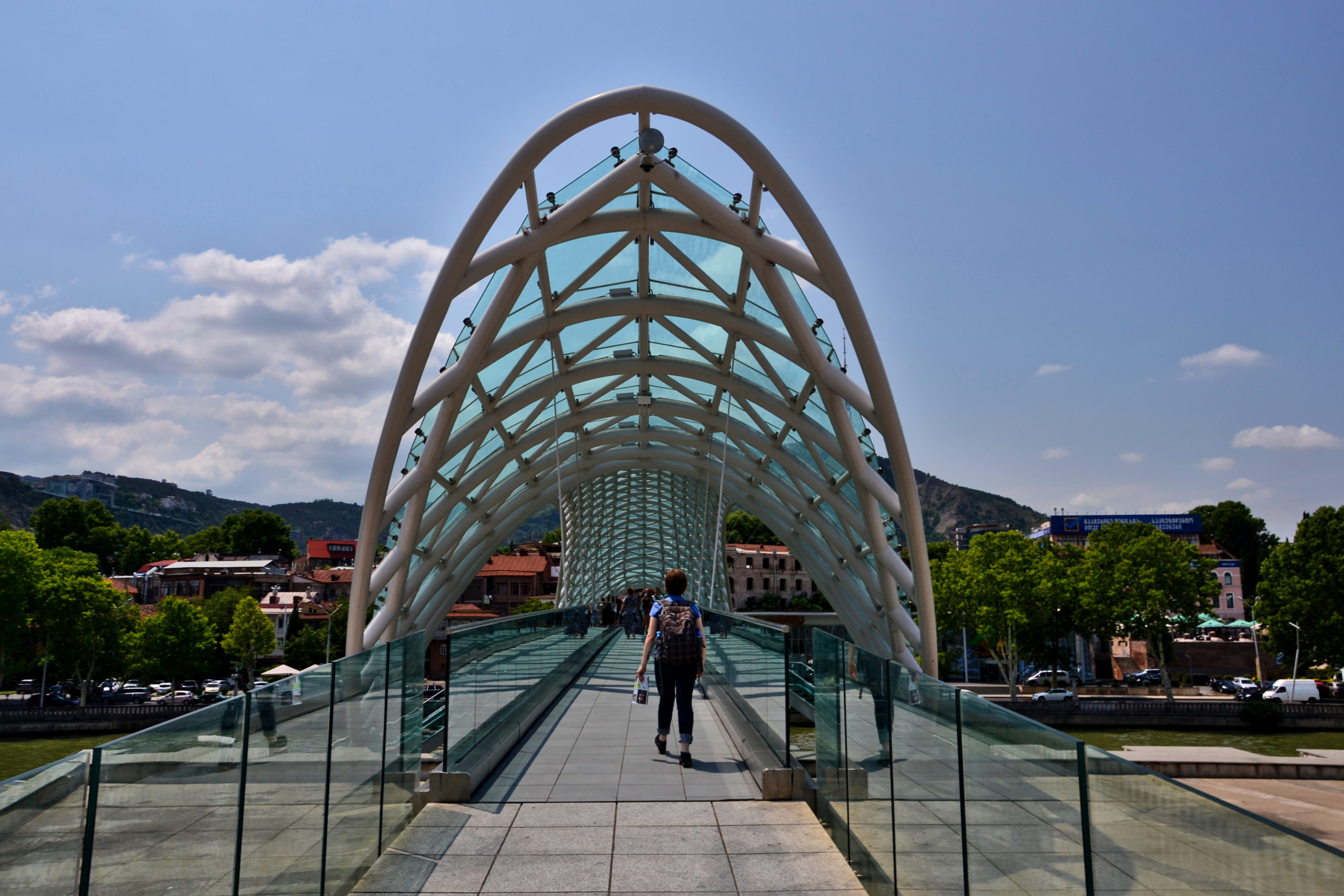 Diese Brücke fällt sofort auf. Für die Georgier war die Brücke aufgrund der hohen Baukosten 2009/2010 umstritten. Heutzutage ist die Brücke ein beliebter Fotostopp.