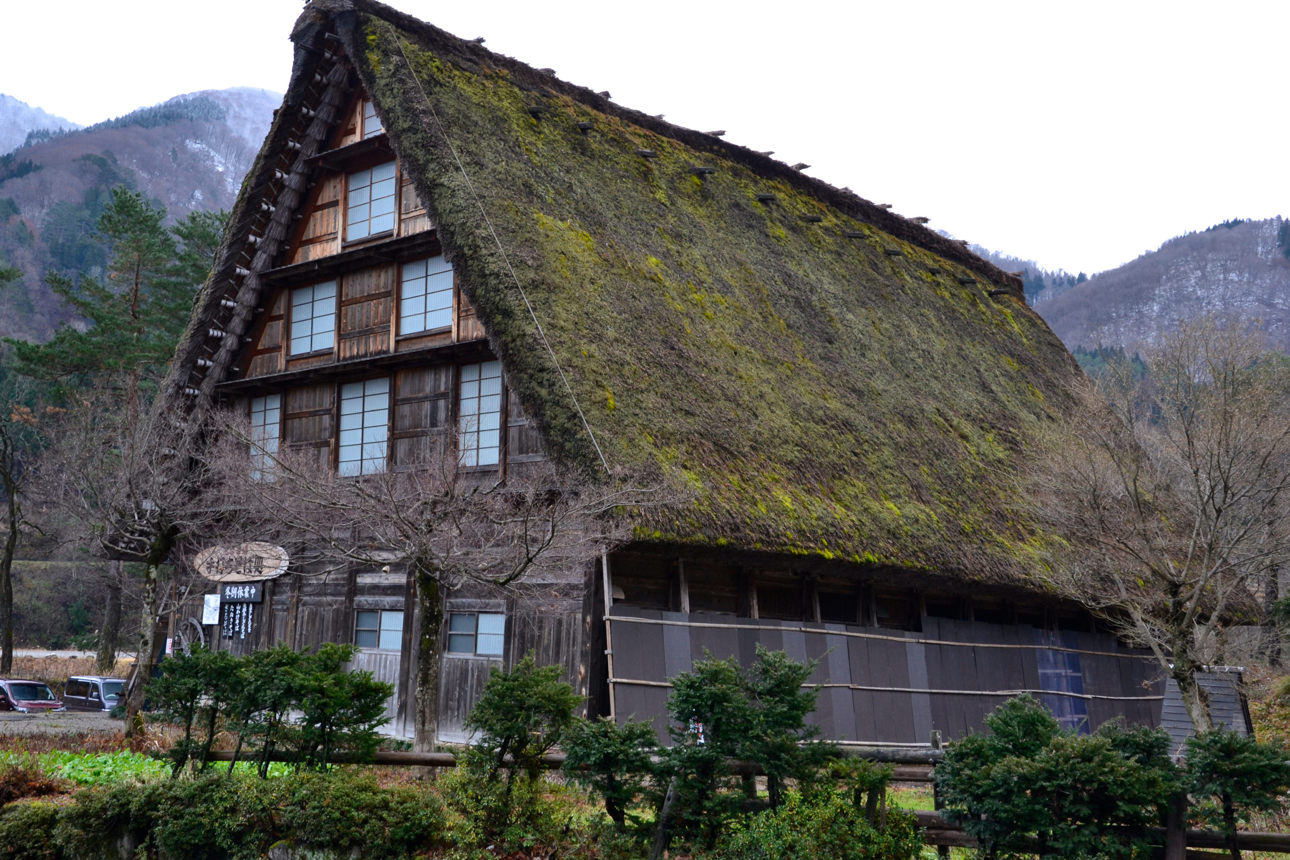 Wir setzten unsere Reise nach Shirakawago in die japanischen Alpen fort. Dies ist einer der schneereichsten Orte in Japan mit bis zu 10 Metern Schnee pro Jahr. Daher haben die Häuser spezielle Dächer: spitze und dick mit Stroh gedeckte Dächer. Diese Konstruktion lässt Regen und Schnee direkt abfallen und verhindert, dass das Wasser in das Haus gelangt. Die Häuser sehen ein bisschen aus wie Häuser im Schwarzwald.