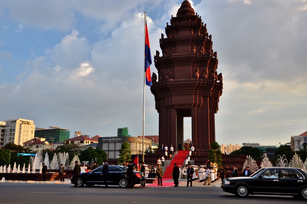Kambodschas Hauptstadt Phnom Penh mit rund 2 Millionen Einwohnern liegt im Süden Kambodschas am Tonle Sap, einem Zufluss zum Mekong. Es scheint, dass der Unterschied zwischen armen und reichen Menschen ziemlich groß ist. Neben dem Tuk Tuk und dem Cyclo-Fahrer haben wir auch viele große und teure Autos gesehen. Während des Regimes der Roten Khmer war die Stadt fast leer. Zu der Zeit, als wir in Phnom Penh waren, besuchte auch Singapurs Präsident die Hauptstadt.