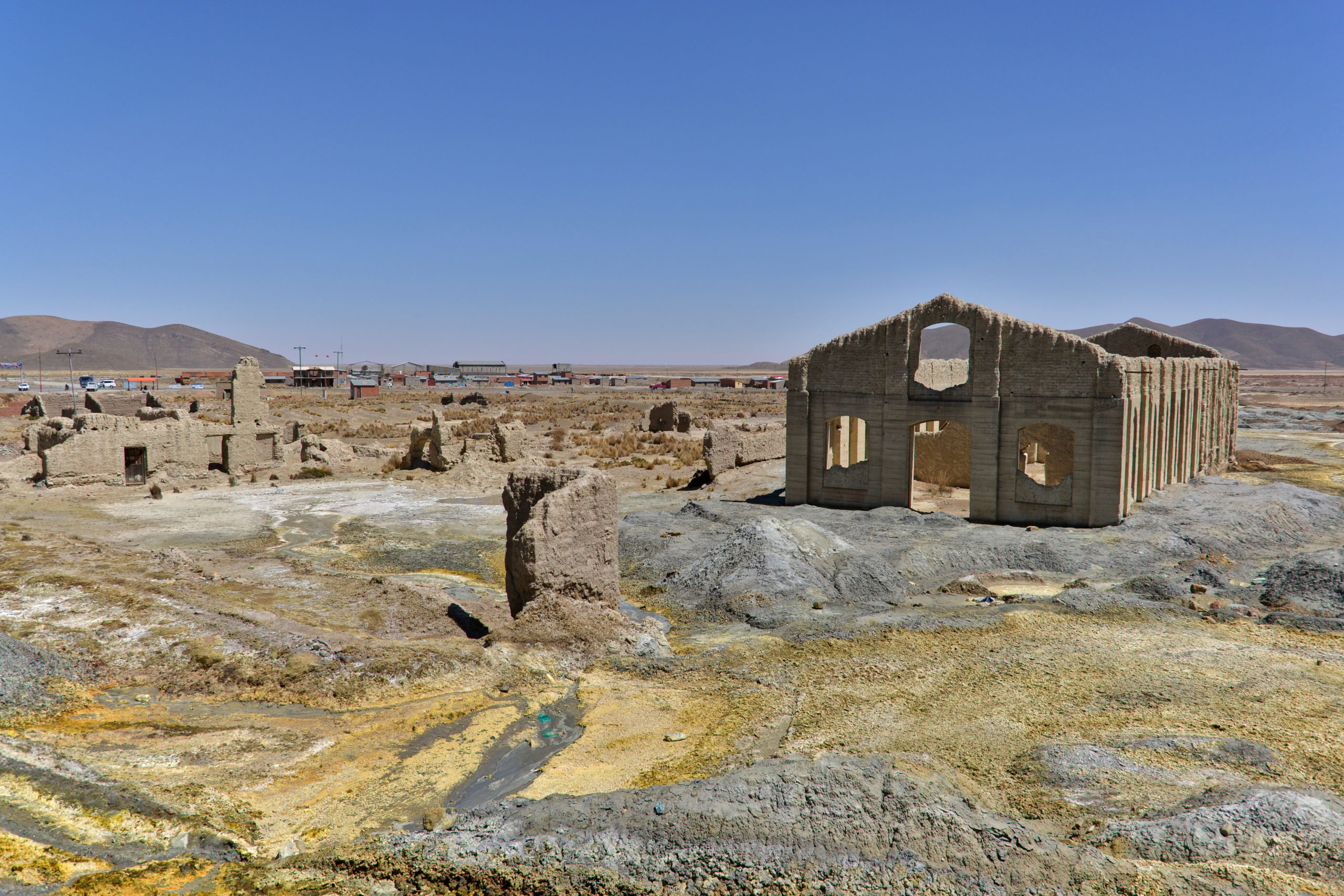 Wir hielten an einem Industriestandort in Poopo an, der ohne Umweg auf dem Weg von Oruro nach Uyuni liegt. Es ist ein schöner Zwischenstopp, um von außen einen authentischen Blick auf ehemalige Bergbaugebäude und das Andenleben zu bekommen.